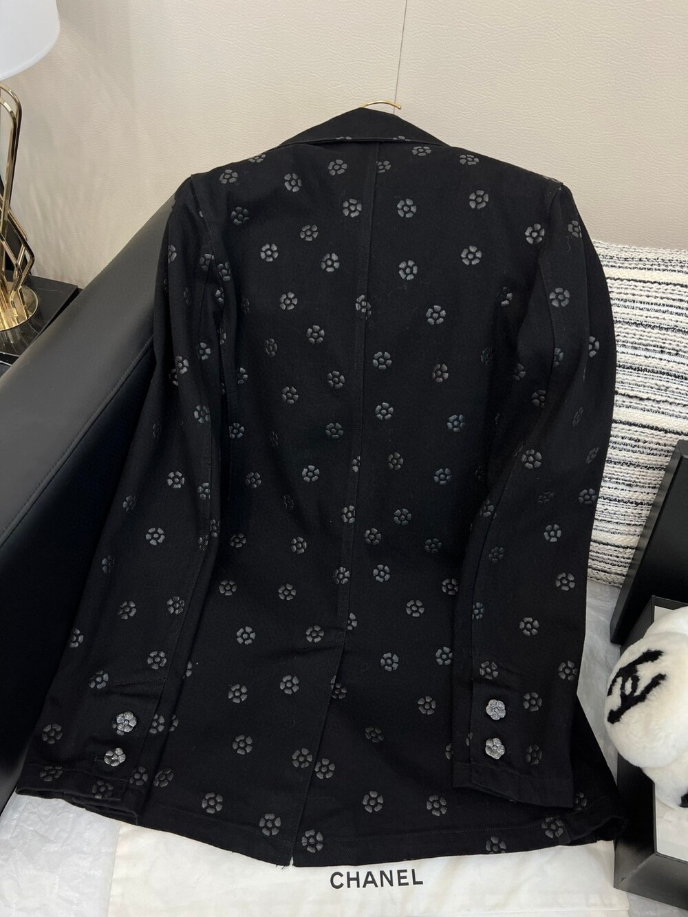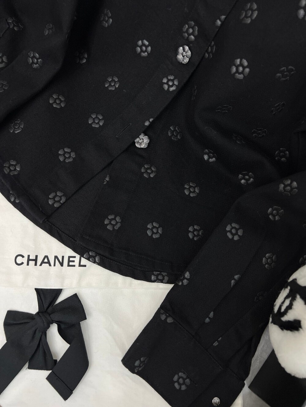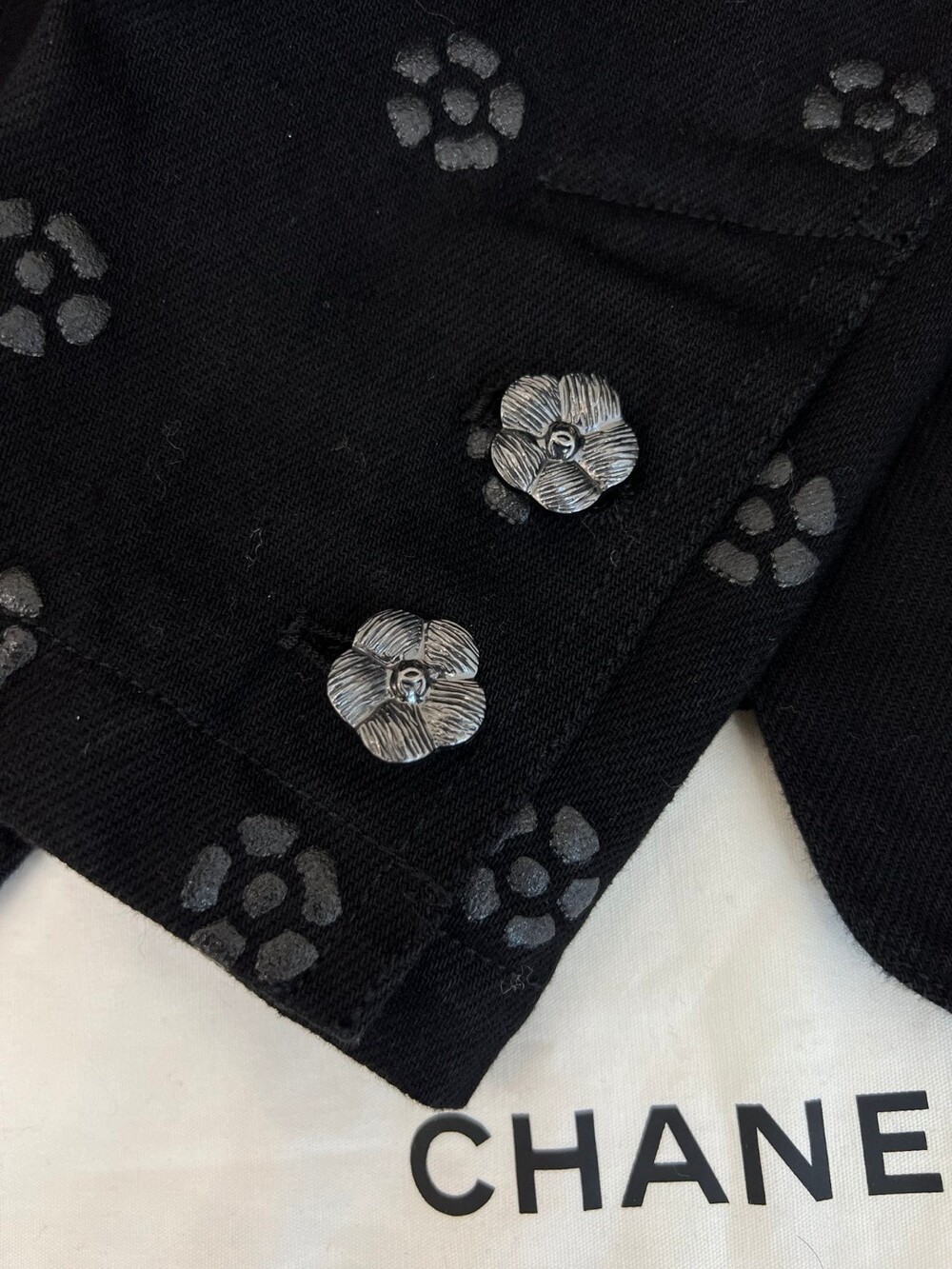 데님소재의 까멜리아 (동백꽃) 블랙컬러로 들어가과