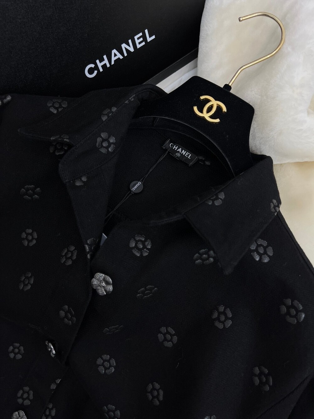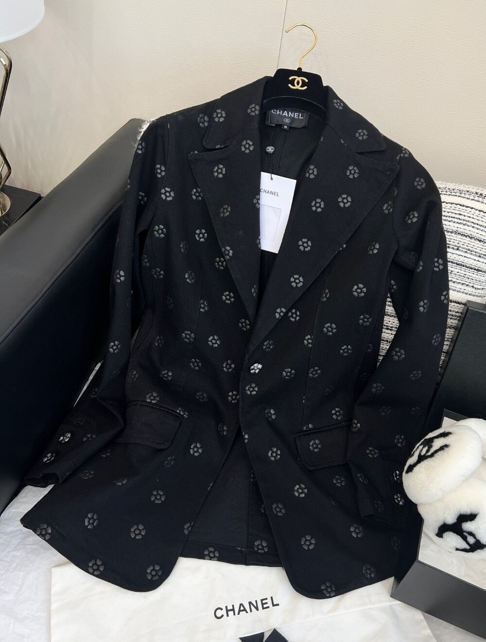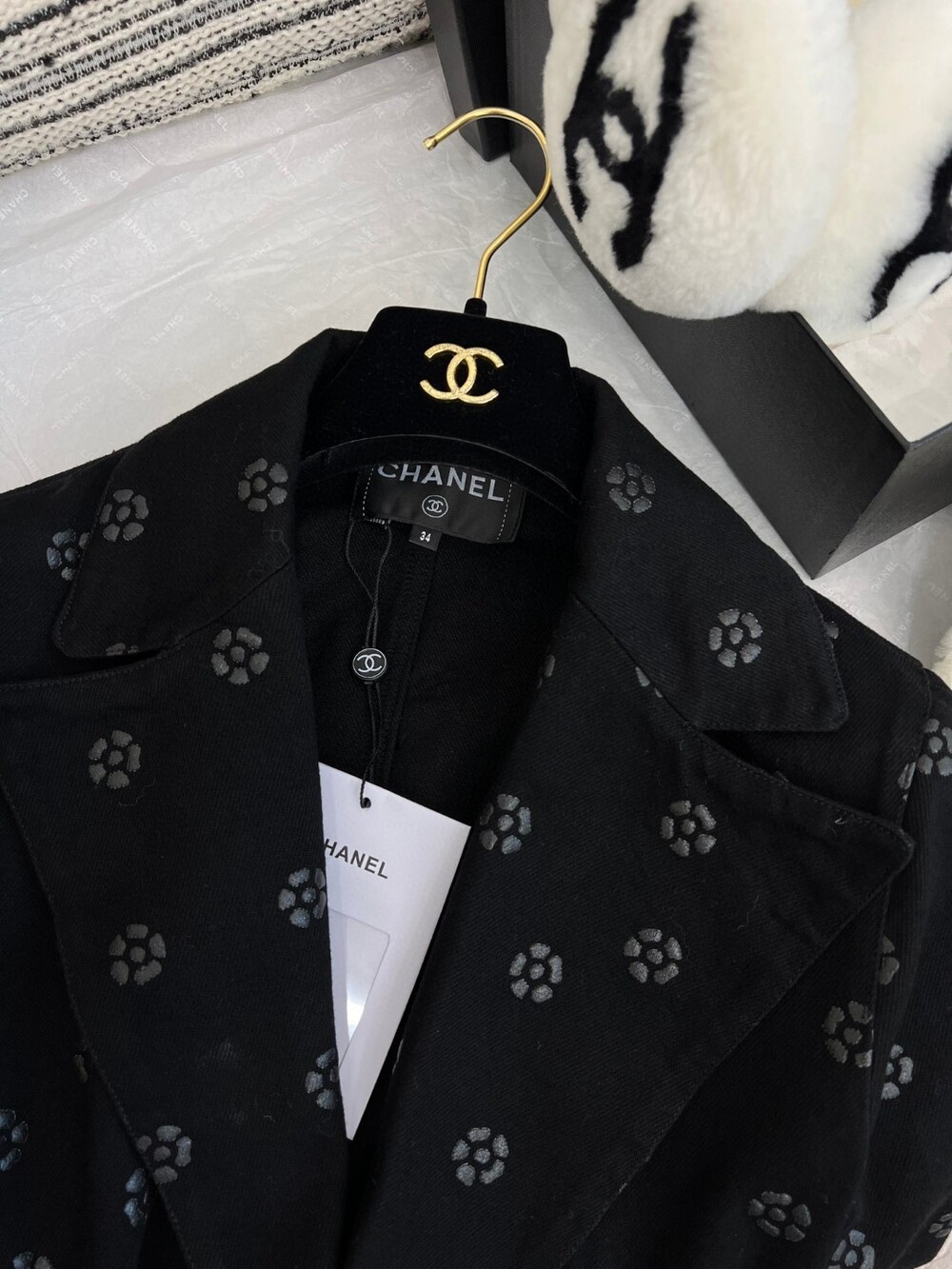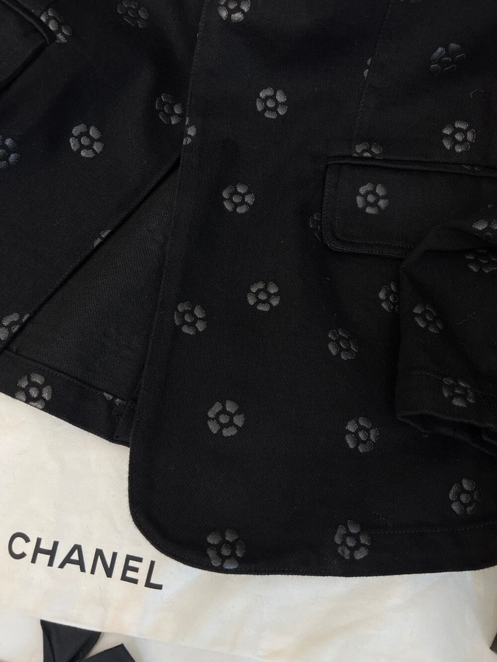 데님소재의 까멜리아 (동백꽃) 블랙컬러로 들어가과