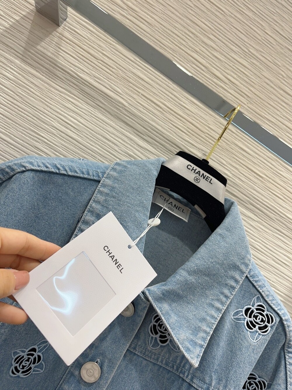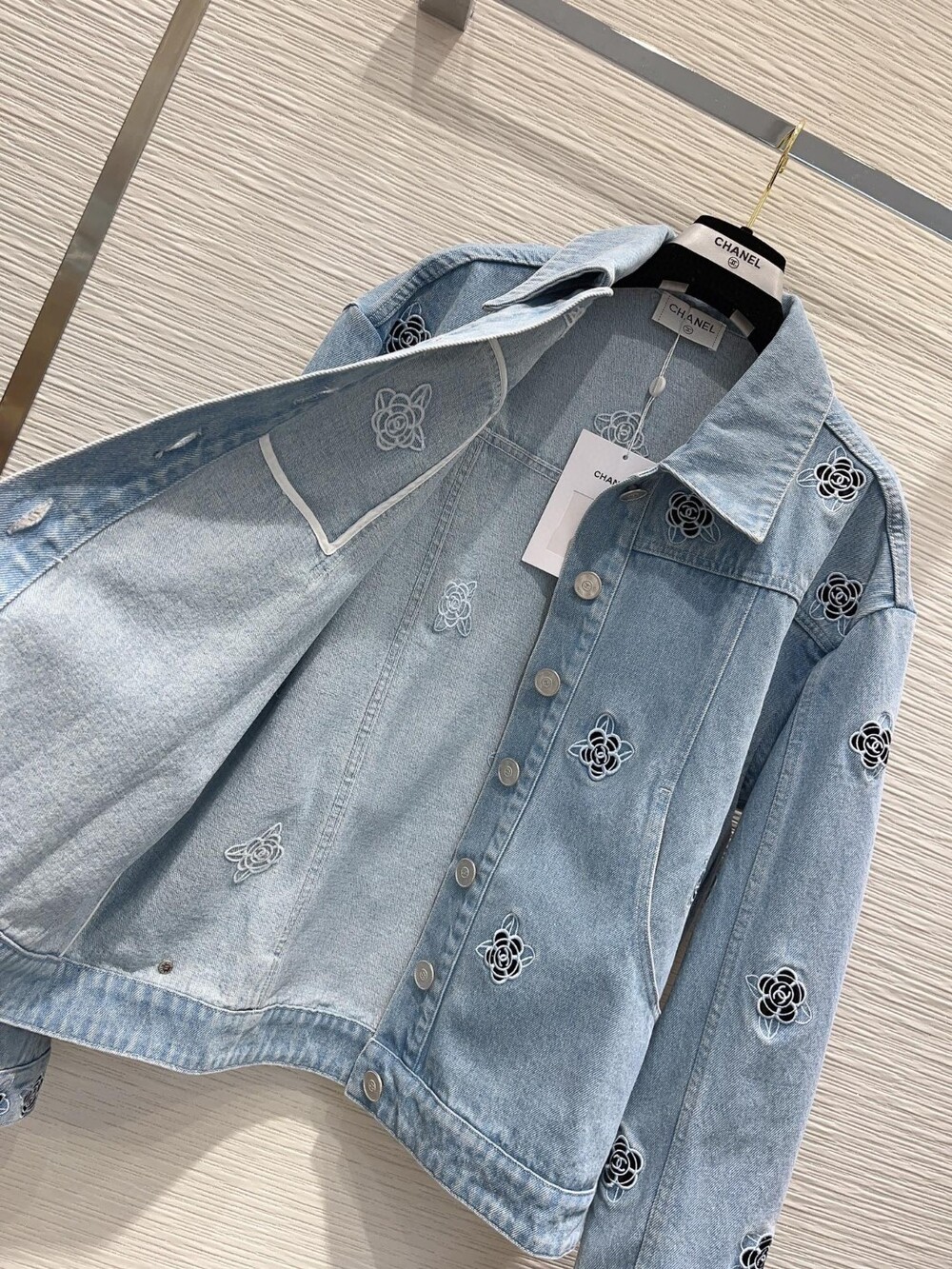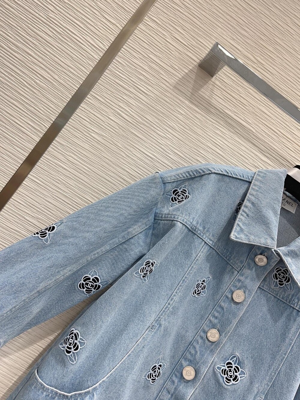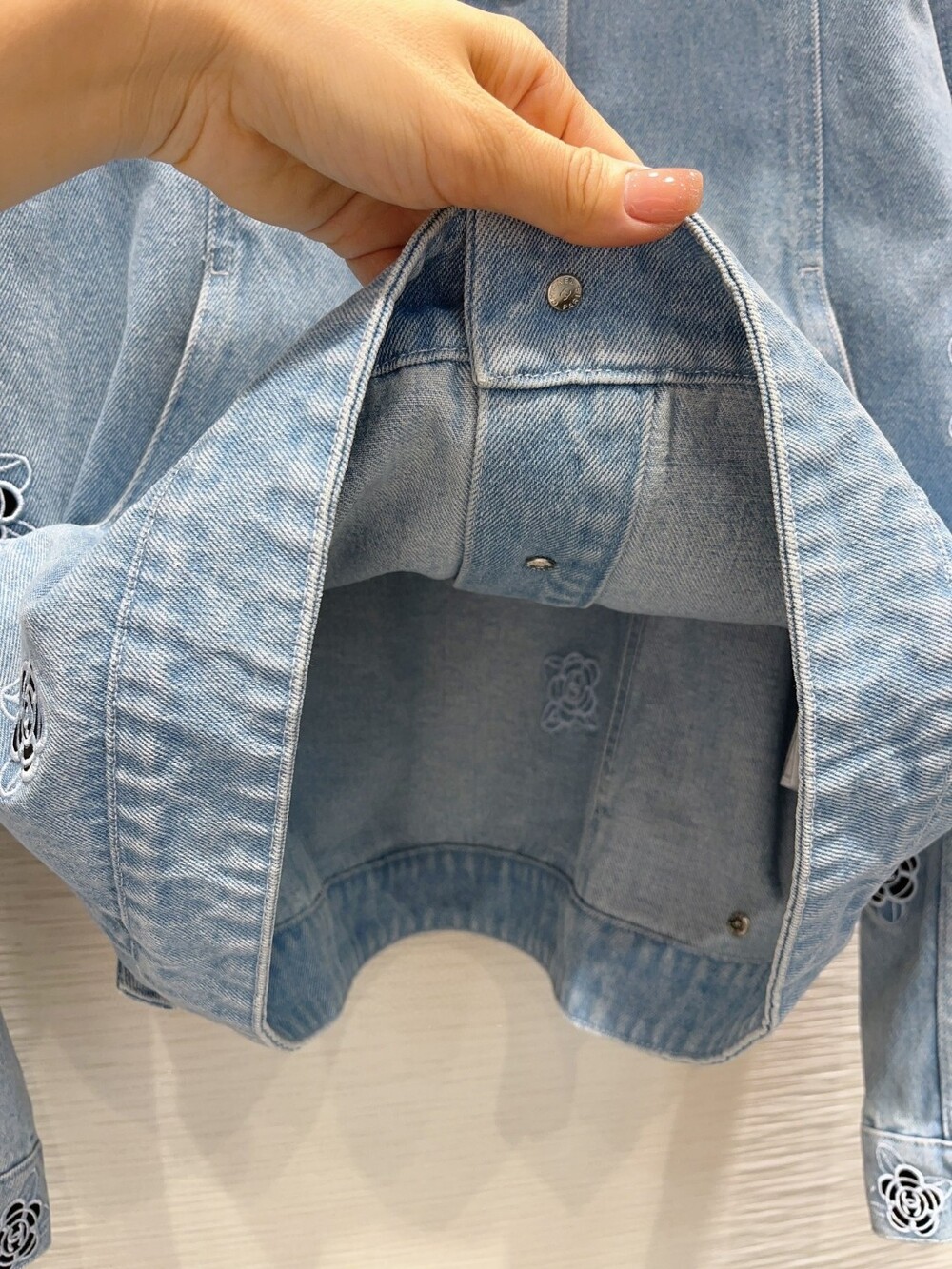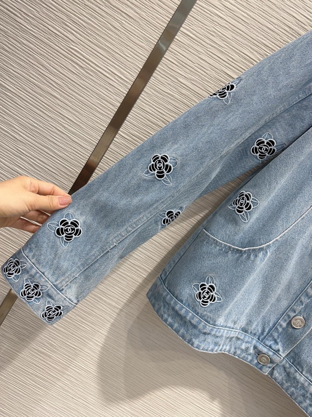 까멜리아 자수의 데님 자켓입니다