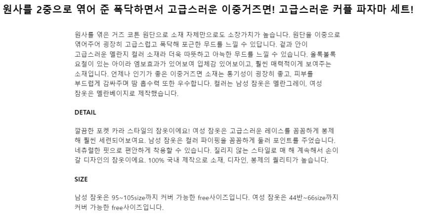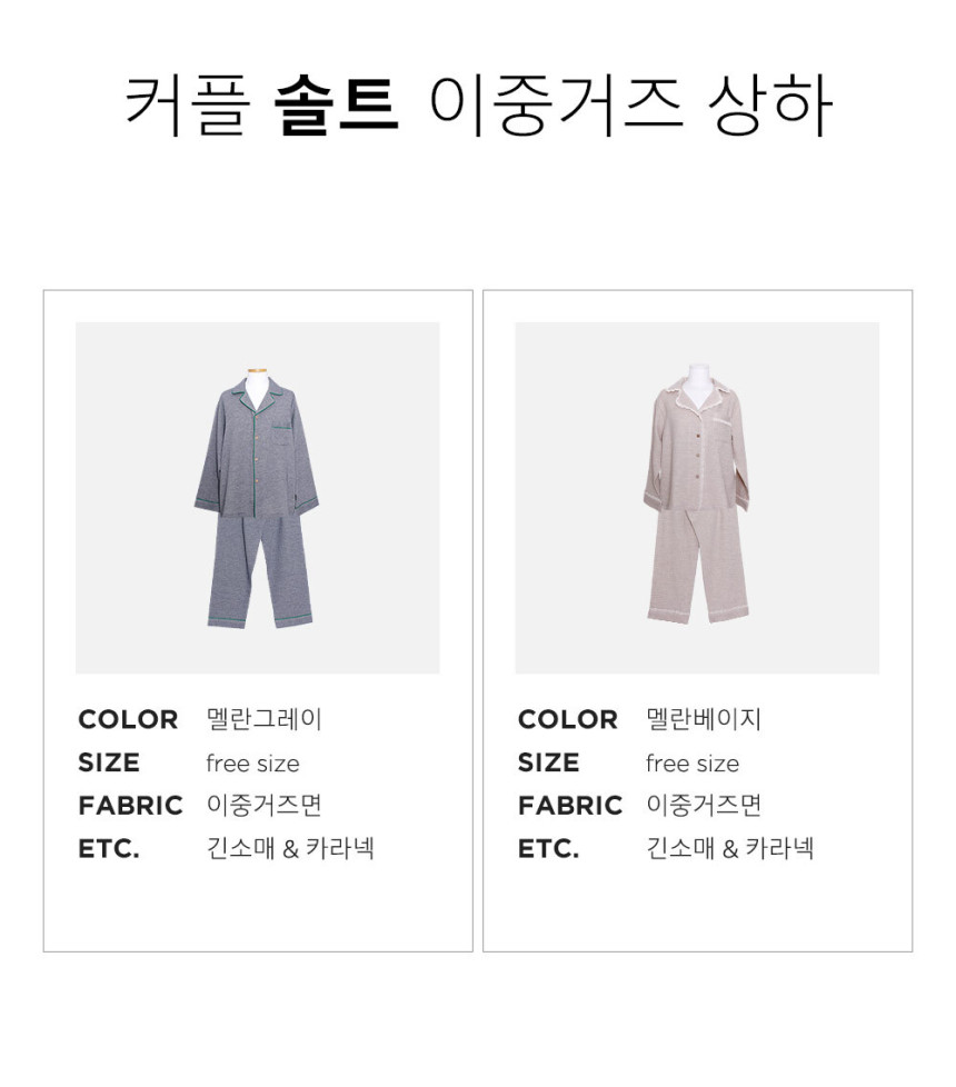 여성 남성 커플 솔트 원피스 투피스 수면 잠옷