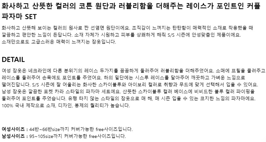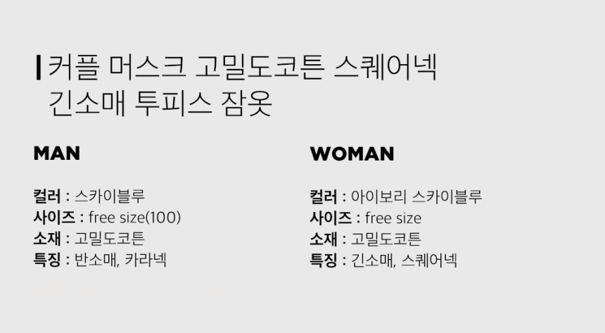 여성 남성 커플 머스크 원피스 투피스 수면 잠옷