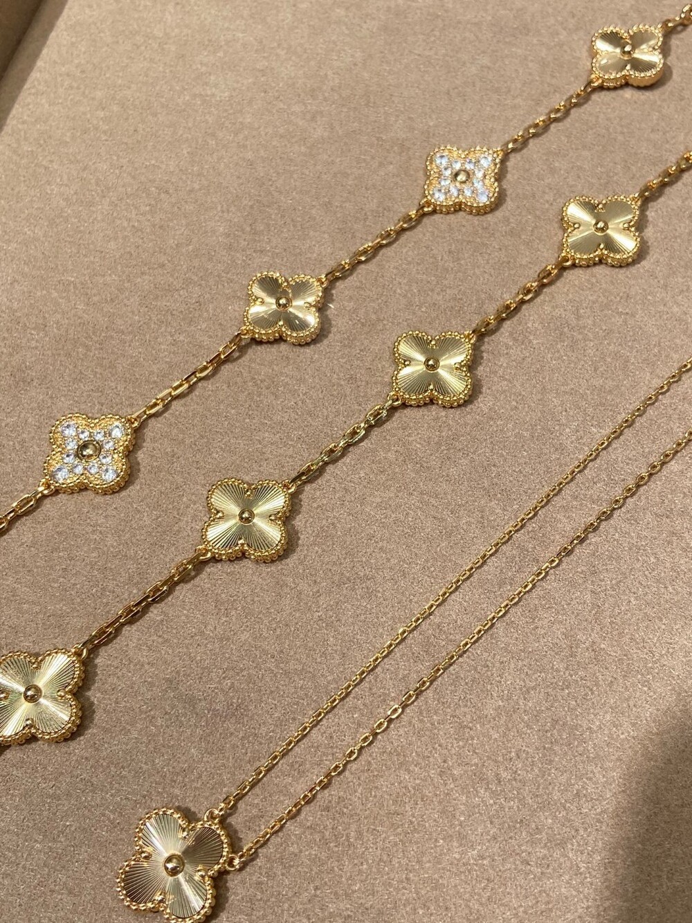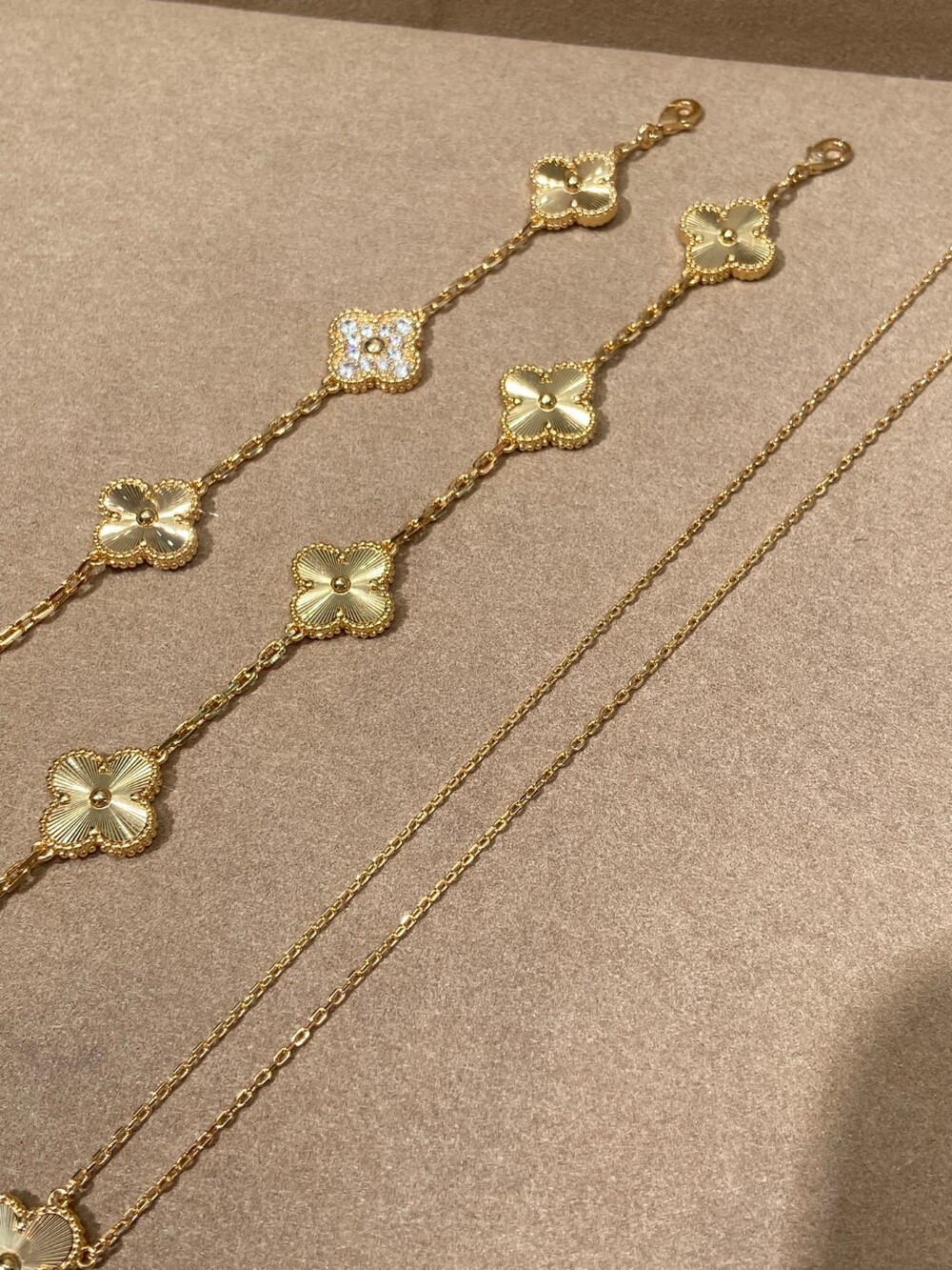 An elegant Alhambra-inspired jewelry set featuring clover-shaped charms.