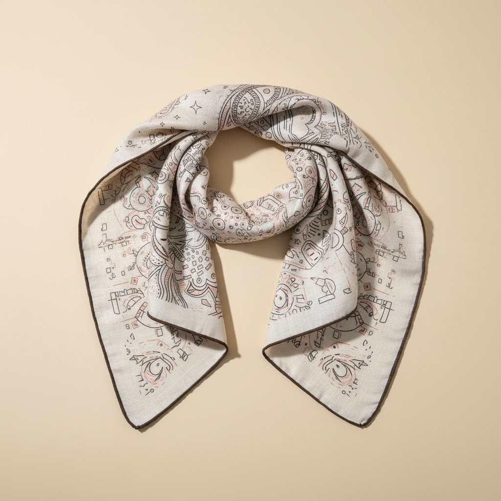 유머러스하고 추상적인 방식으로 표현한 스카프 입니다.
