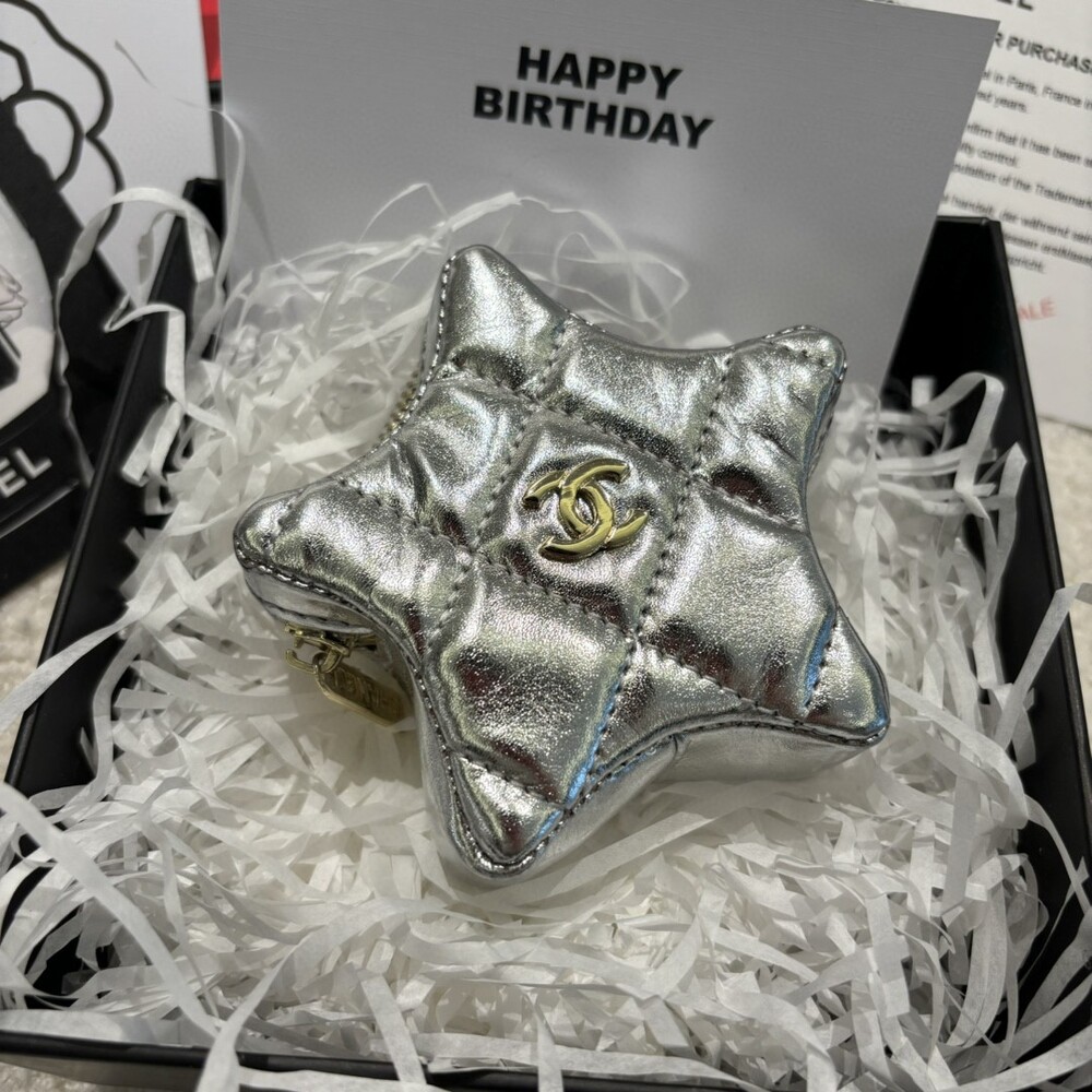 Chanel vip birthday present pouch coin walletcute and thick, so it's a good item to use here and thereIt's a collection made of silver with an identification of 24ss. A cute star-shaped coin wallet