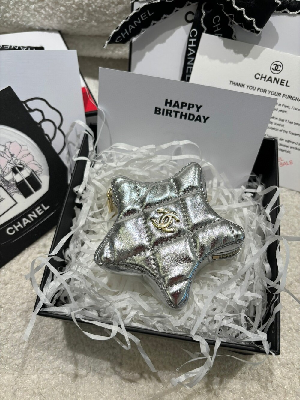 당일발송 [birthday gift set] 샤넬 실버 스타 코인 파우치