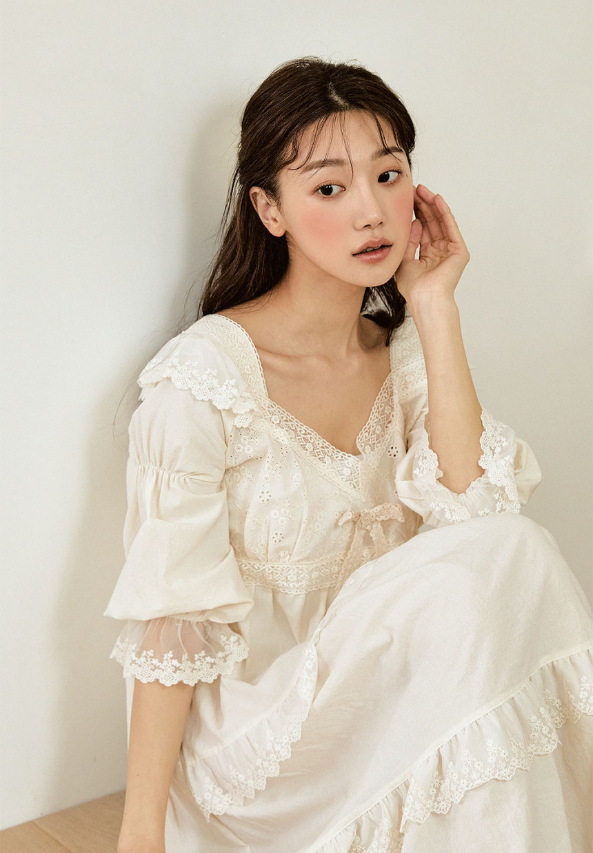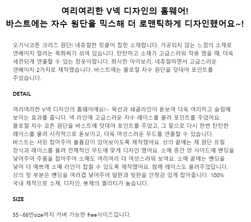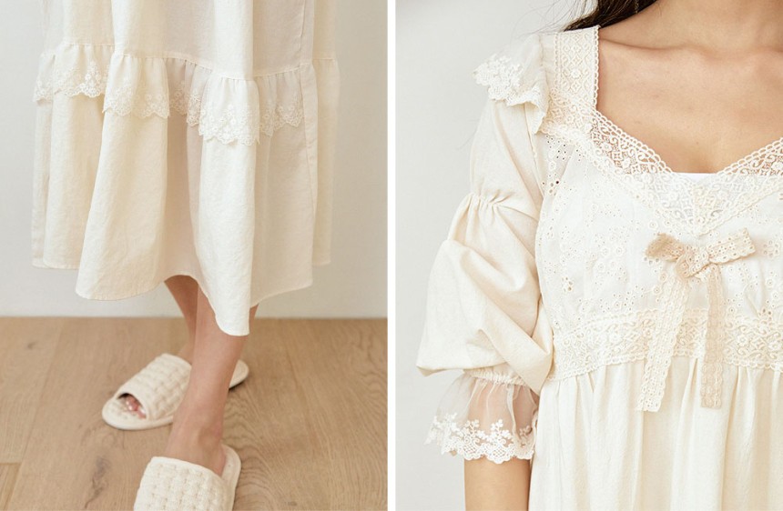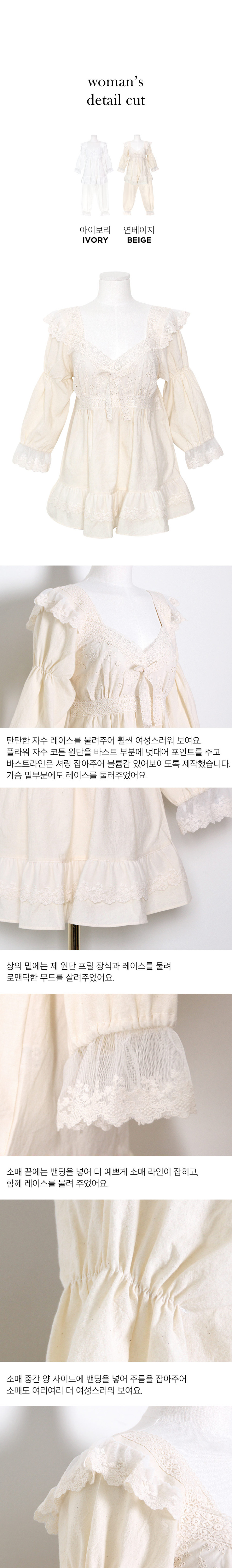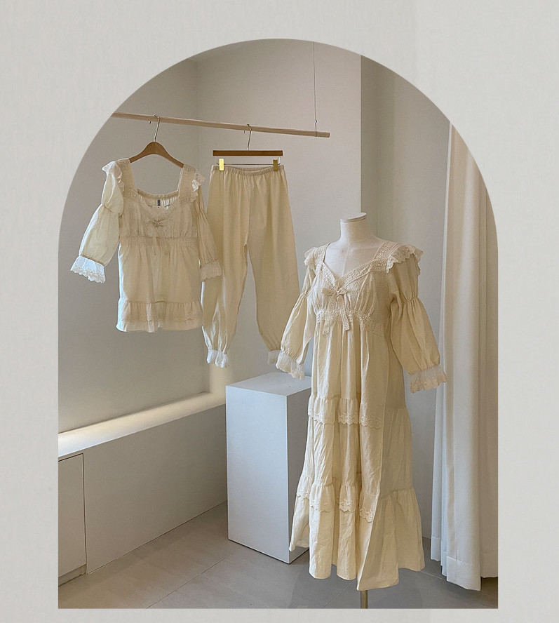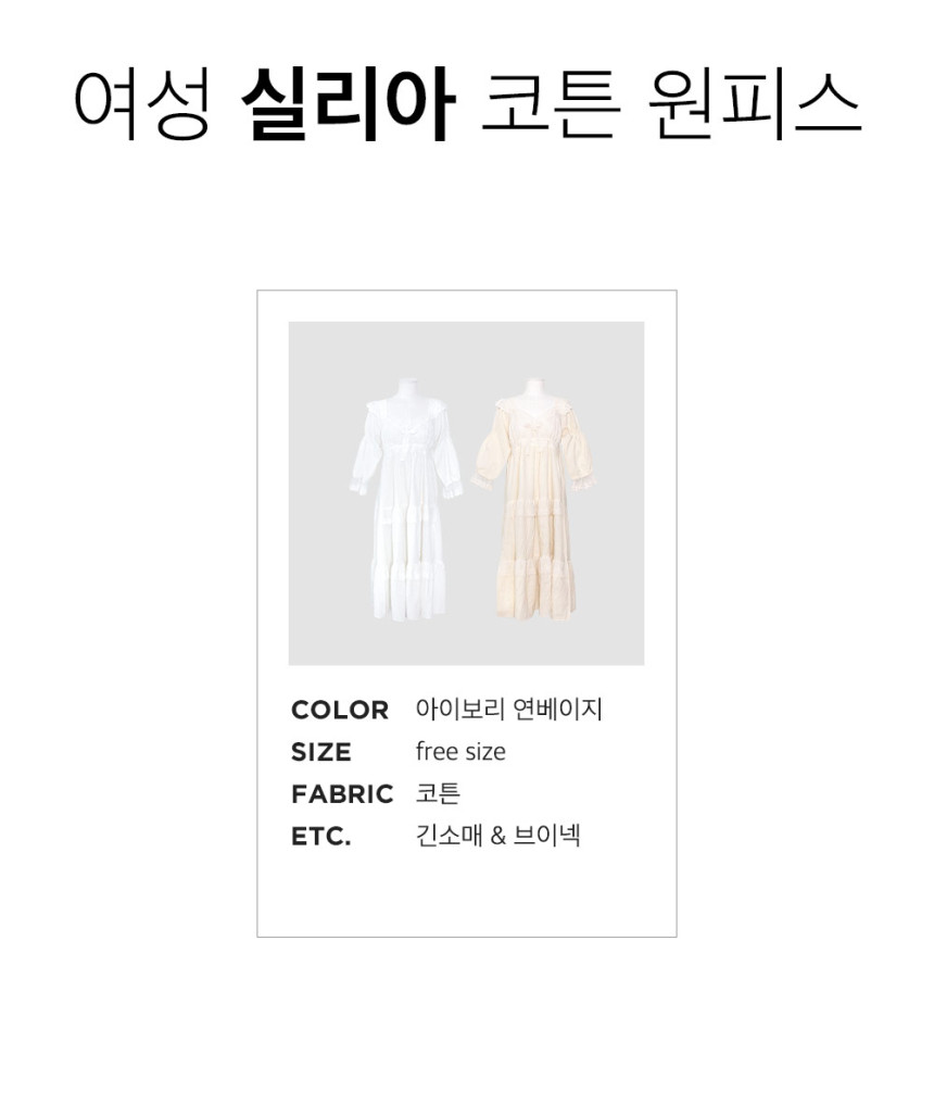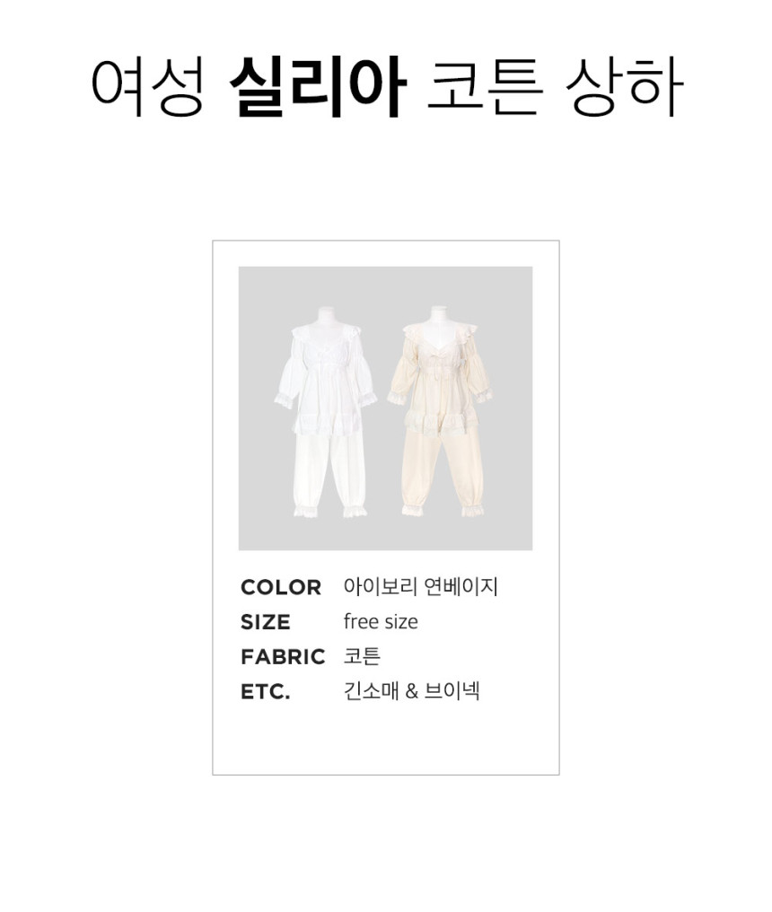 여성 실리아 코튼 원피스 투피스 수면 잠옷