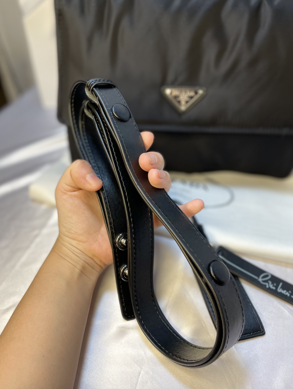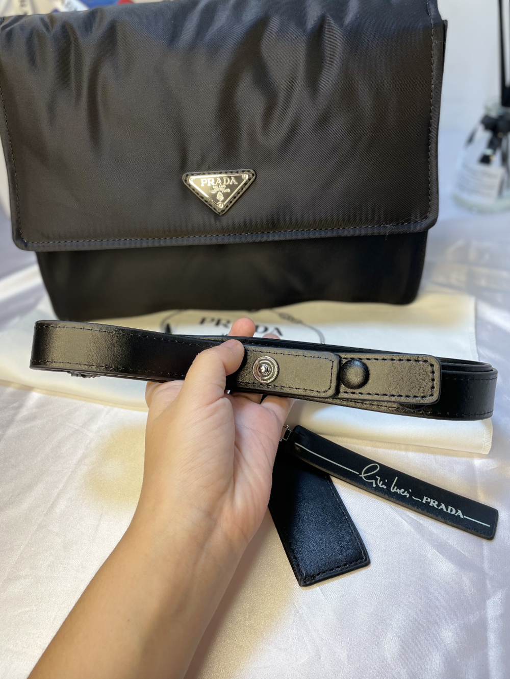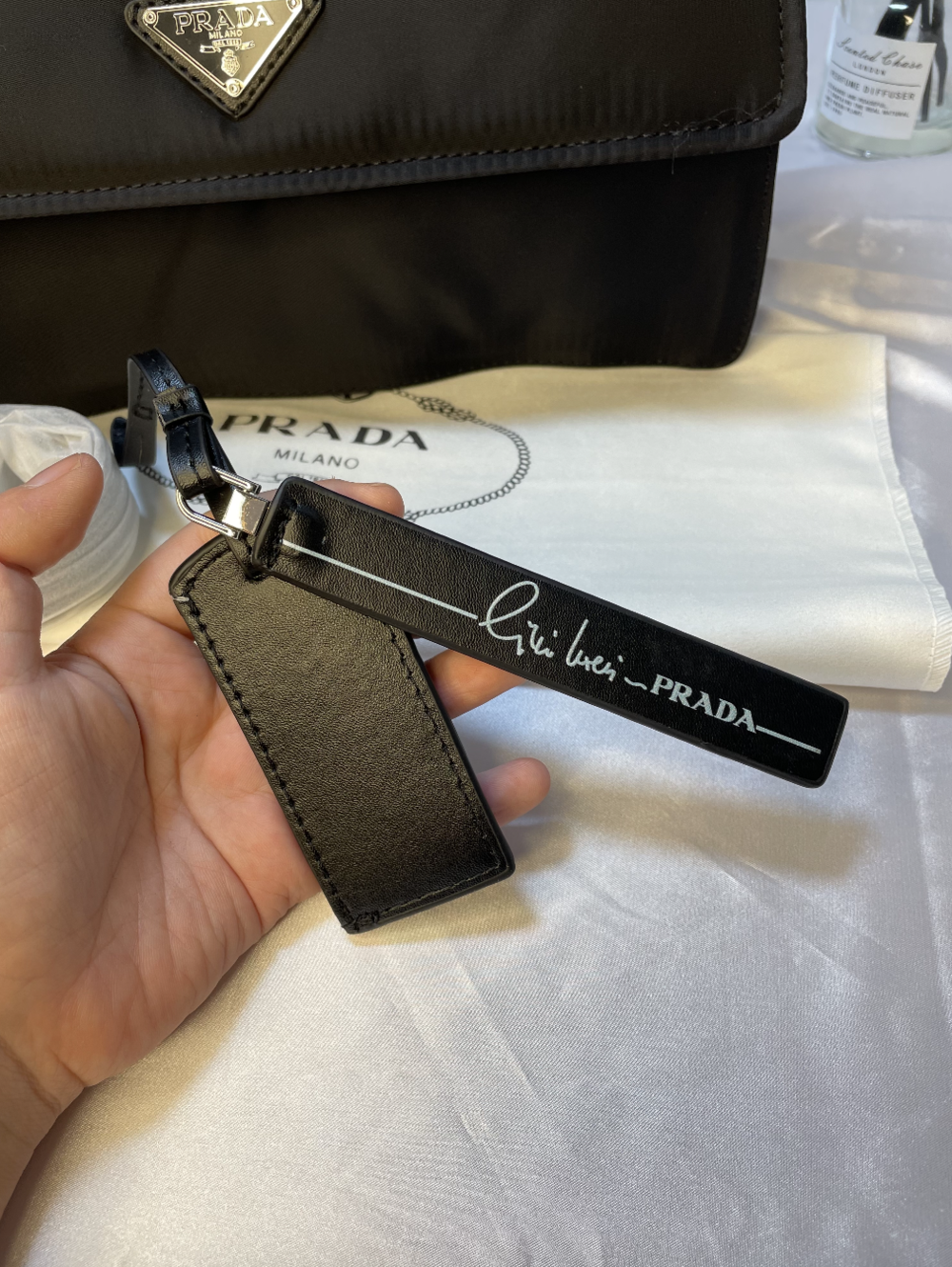 프라다 네임택 메신저백