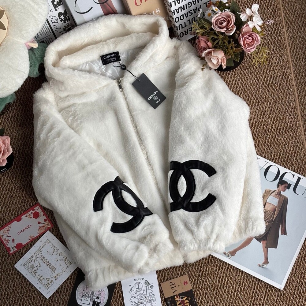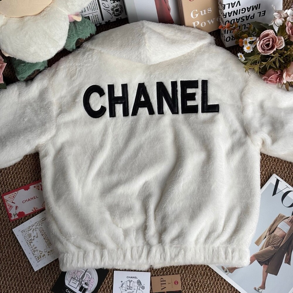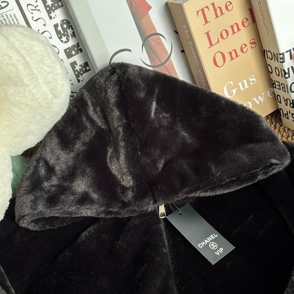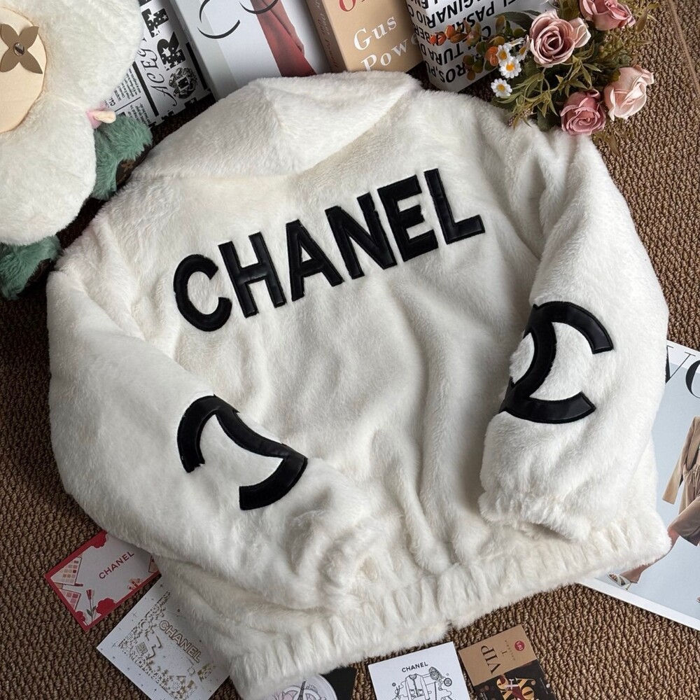 This Chanel-inspired shearling jacket combines warmth and elegance,