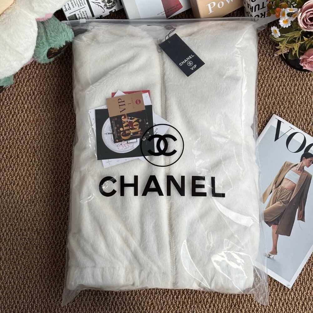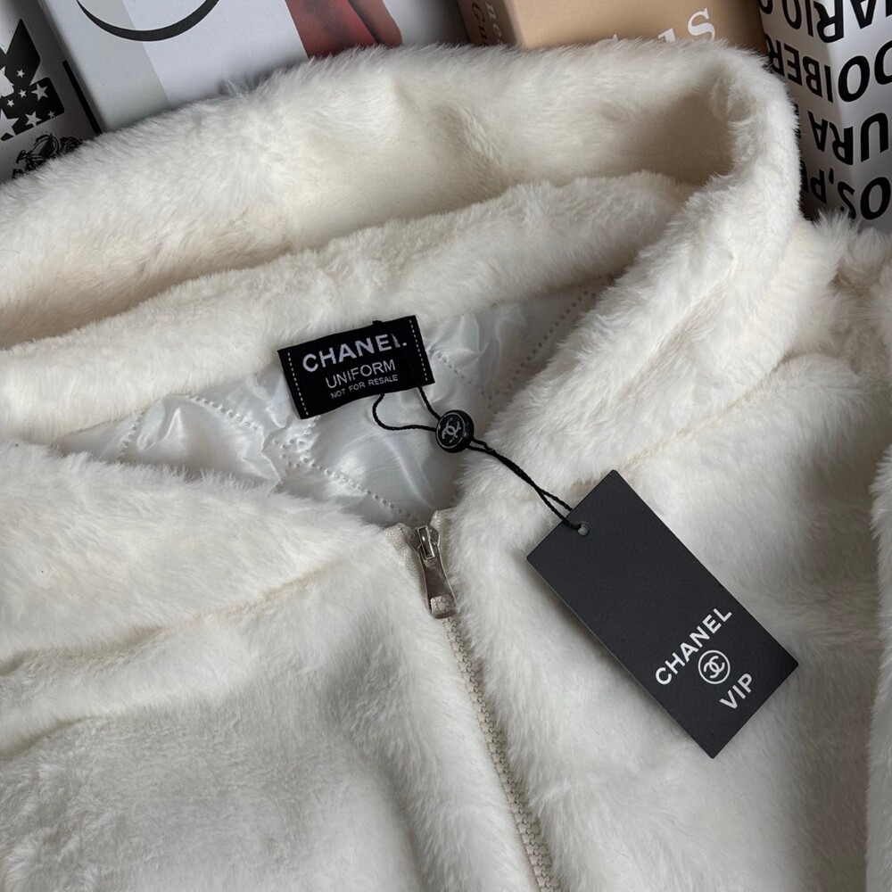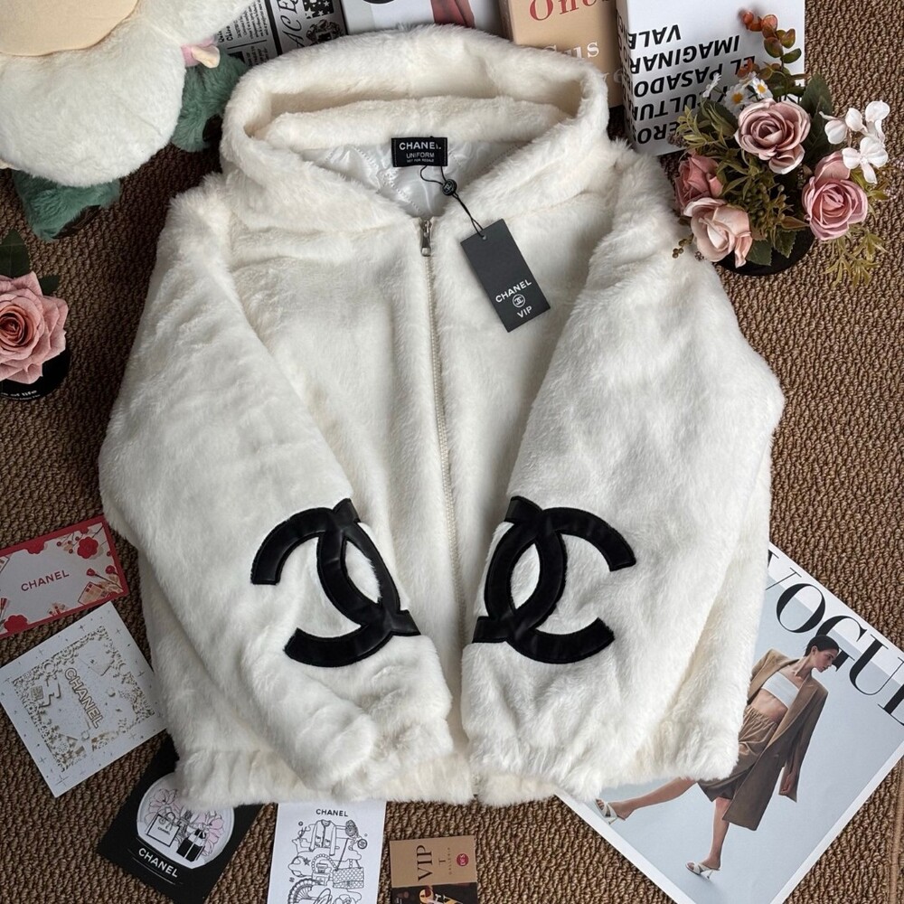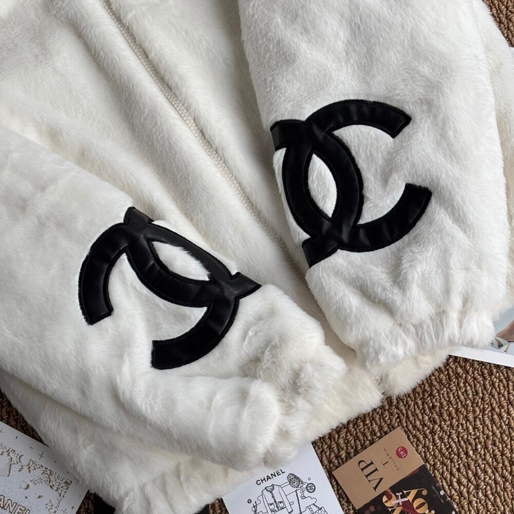 This Chanel-inspired shearling jacket combines warmth and elegance,