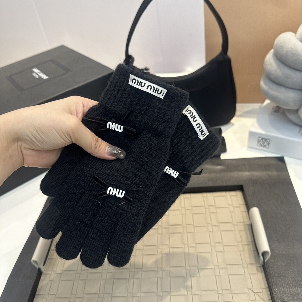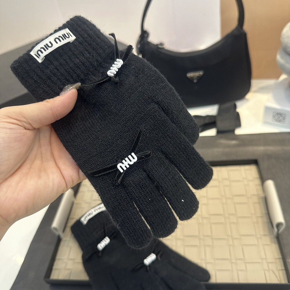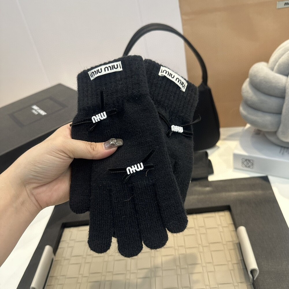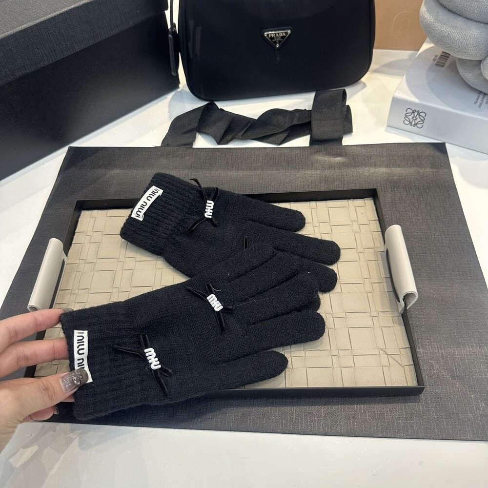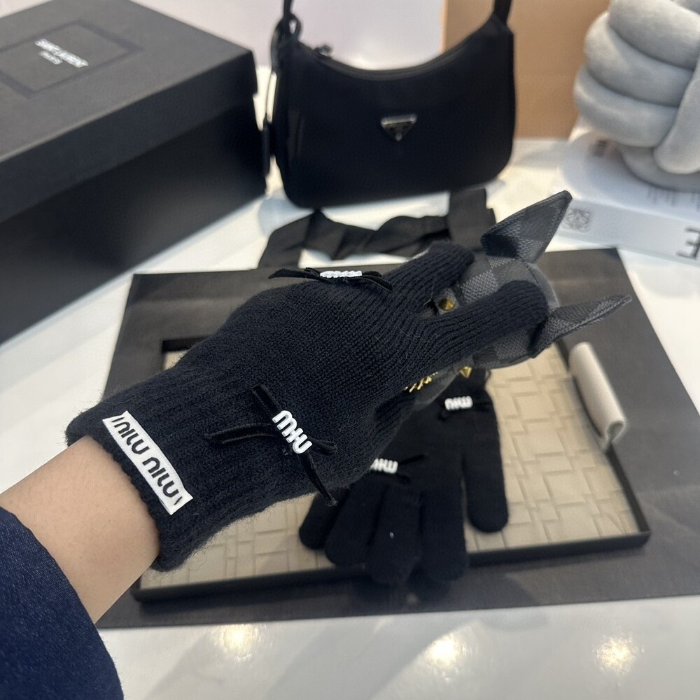 Original single item MIUMIU fallacy Explosive bow wool gloves exported overseas aristocratic celebrities Fan must-have artifact to keep warm