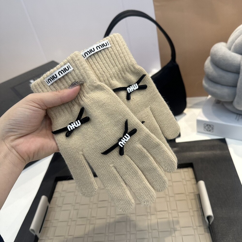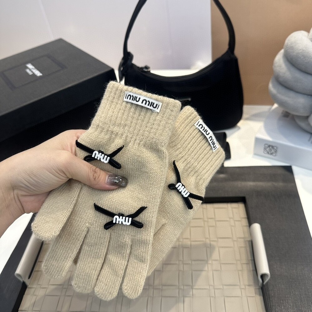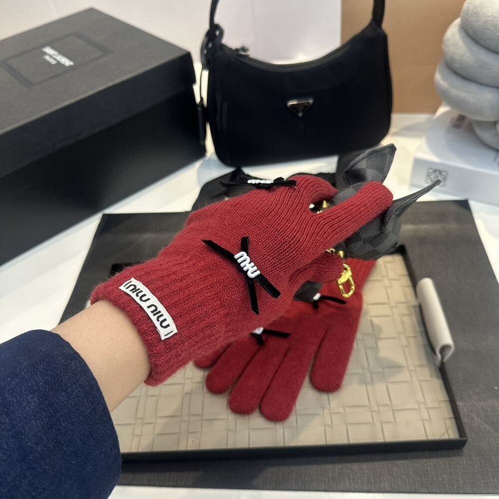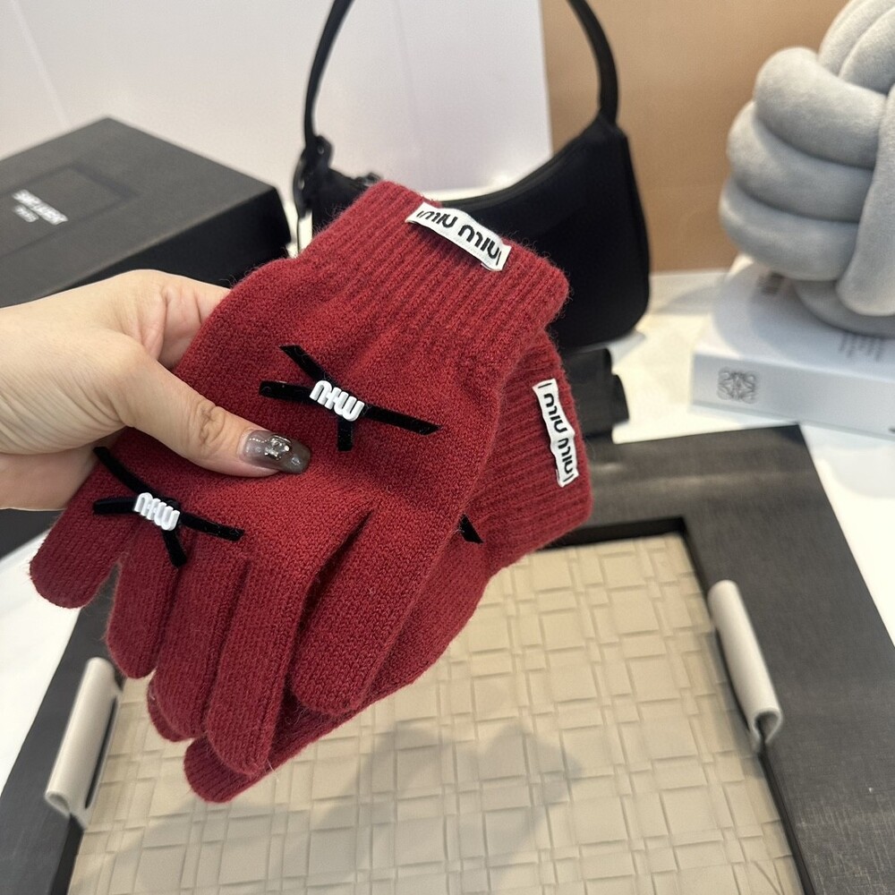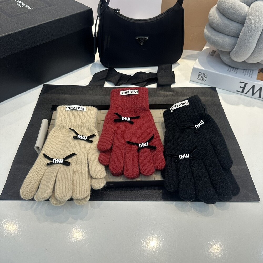 Original single item MIUMIU fallacy Explosive bow wool gloves exported overseas aristocratic celebrities Fan must-have artifact to keep warm