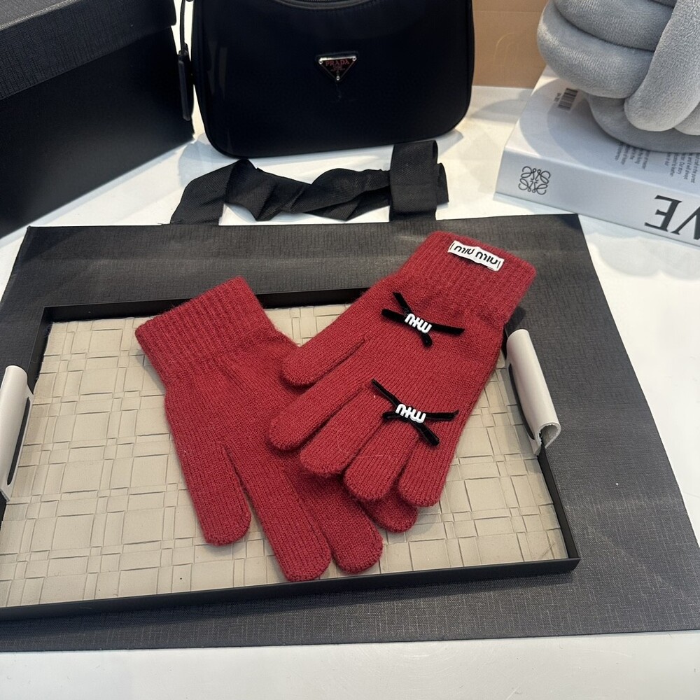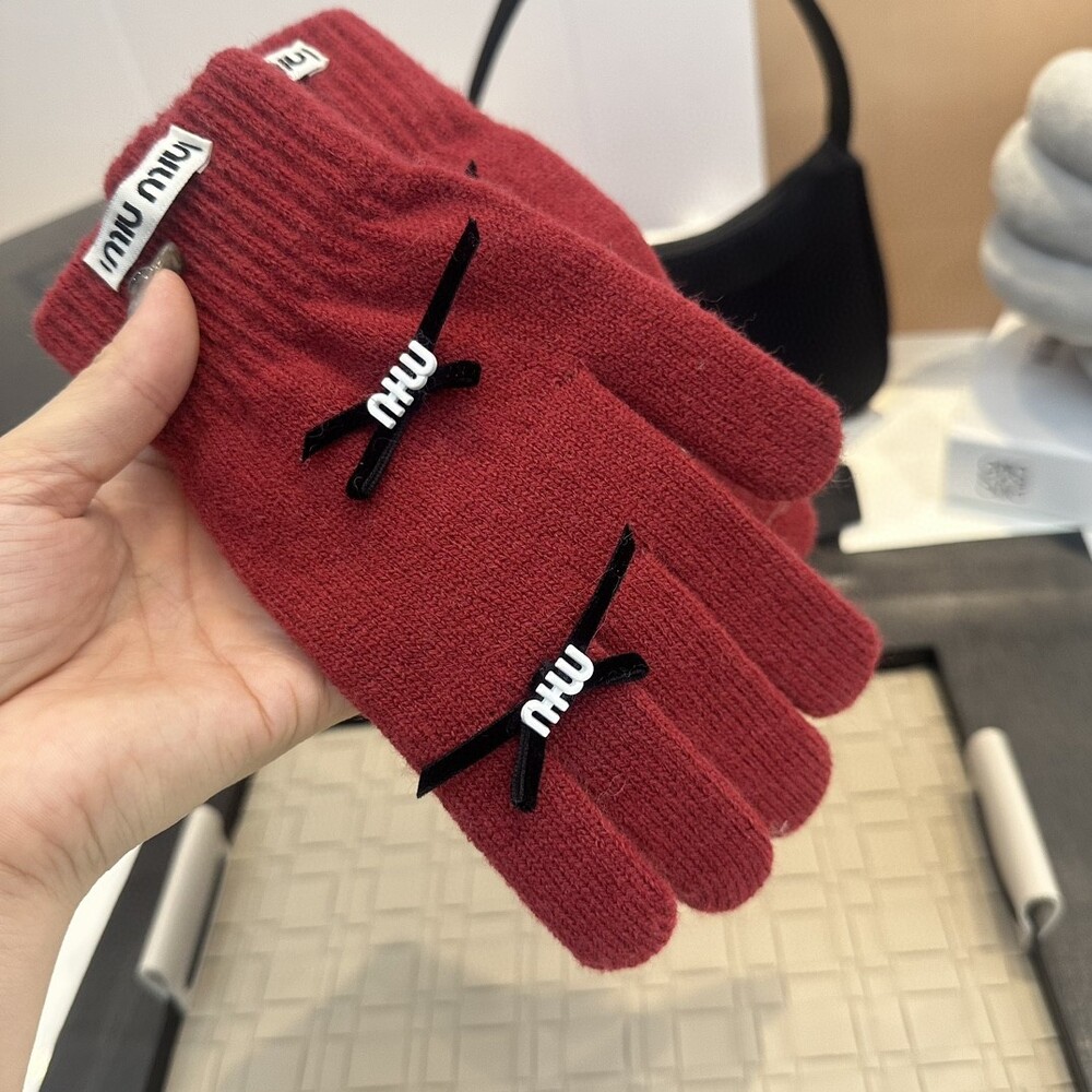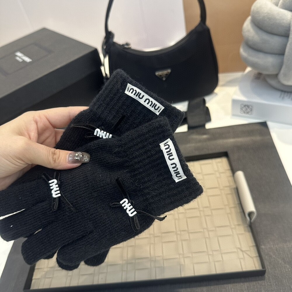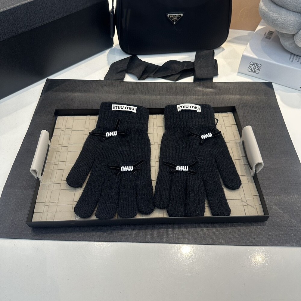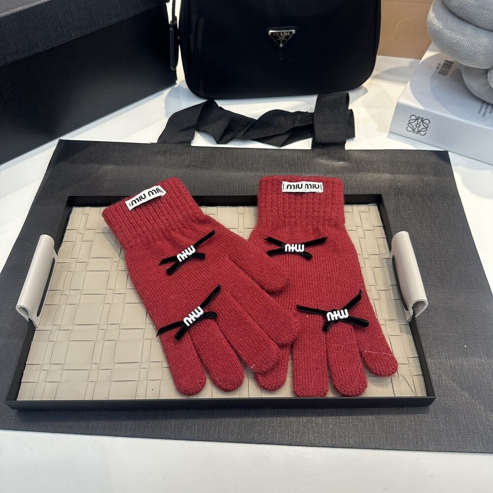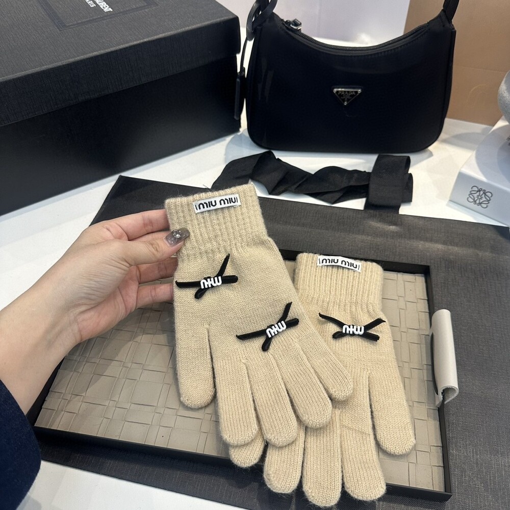 Original single item MIUMIU fallacy Explosive bow wool gloves exported overseas aristocratic celebrities Fan must-have artifact to keep warm
