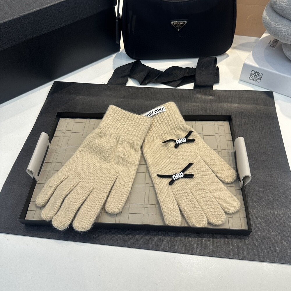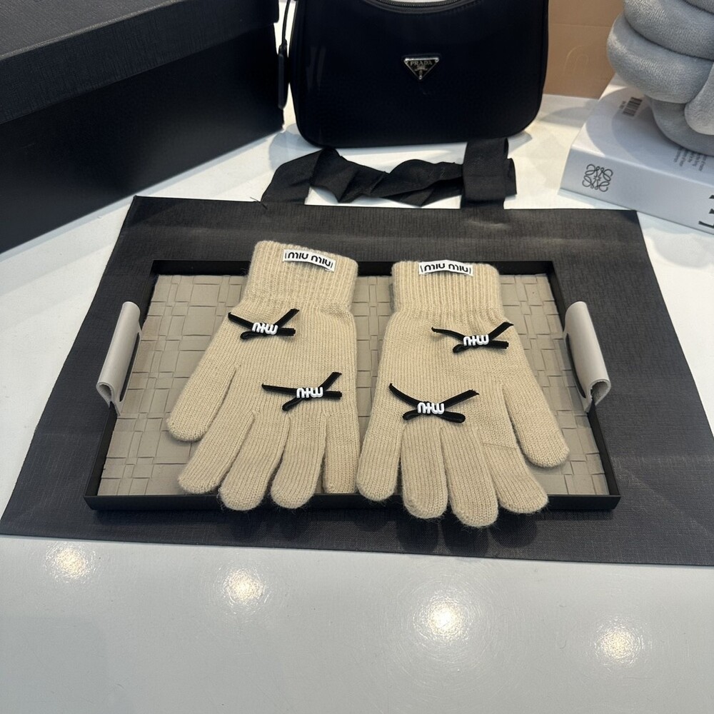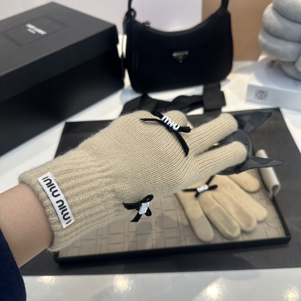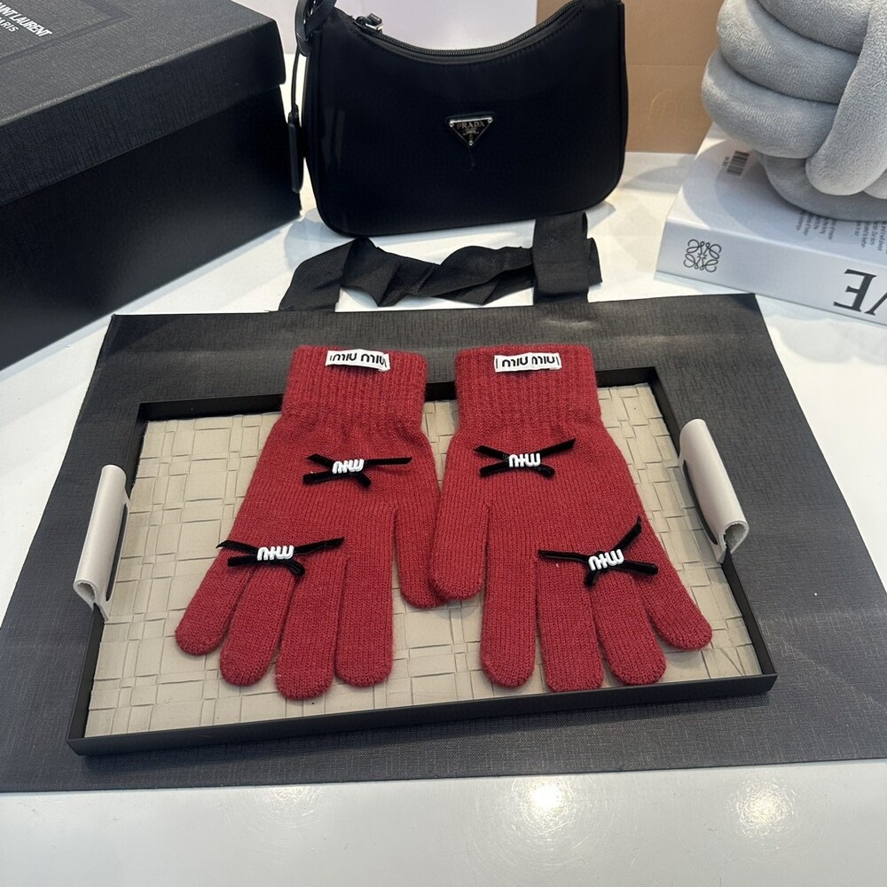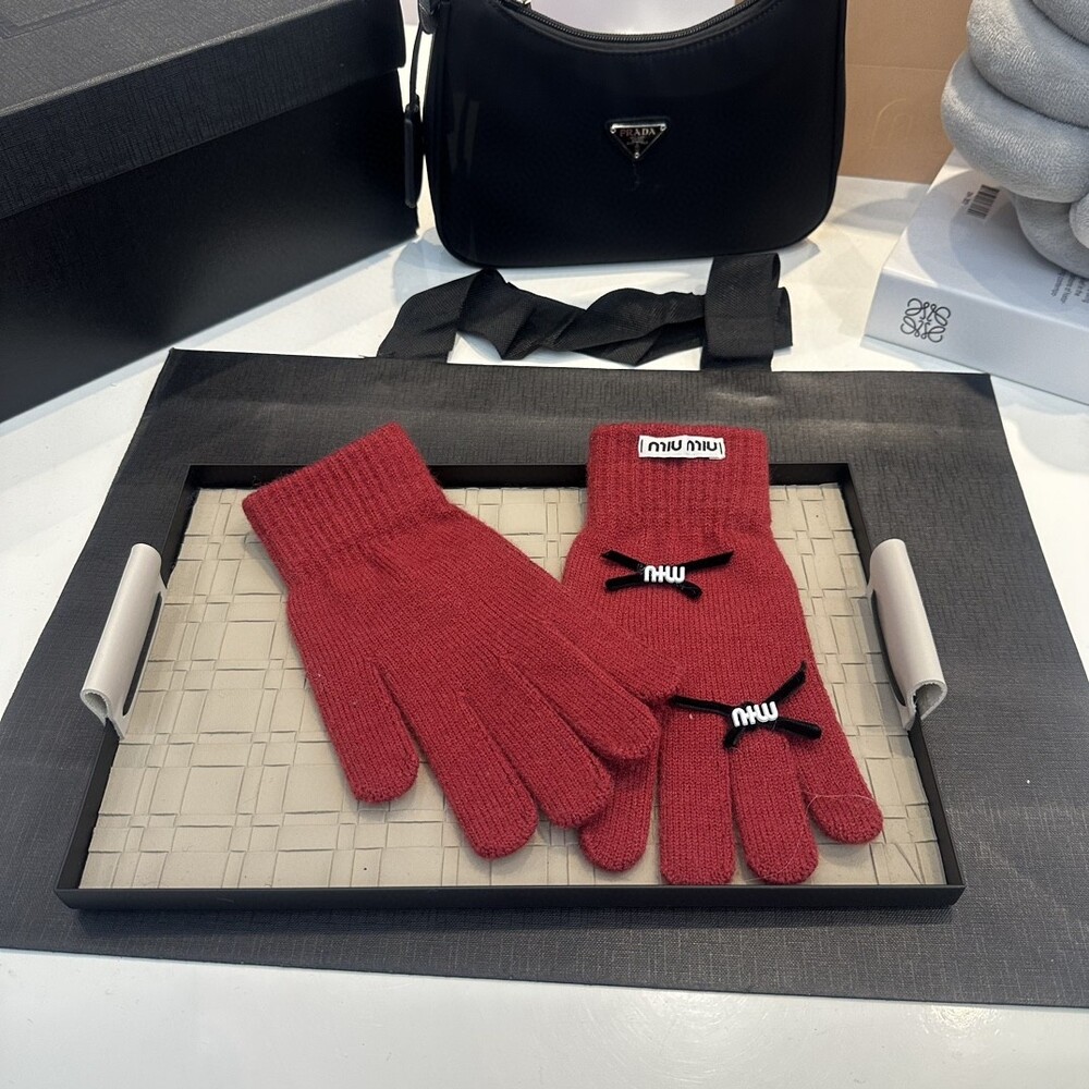 Original single item MIUMIU fallacy Explosive bow wool gloves exported overseas aristocratic celebrities Fan must-have artifact to keep warm