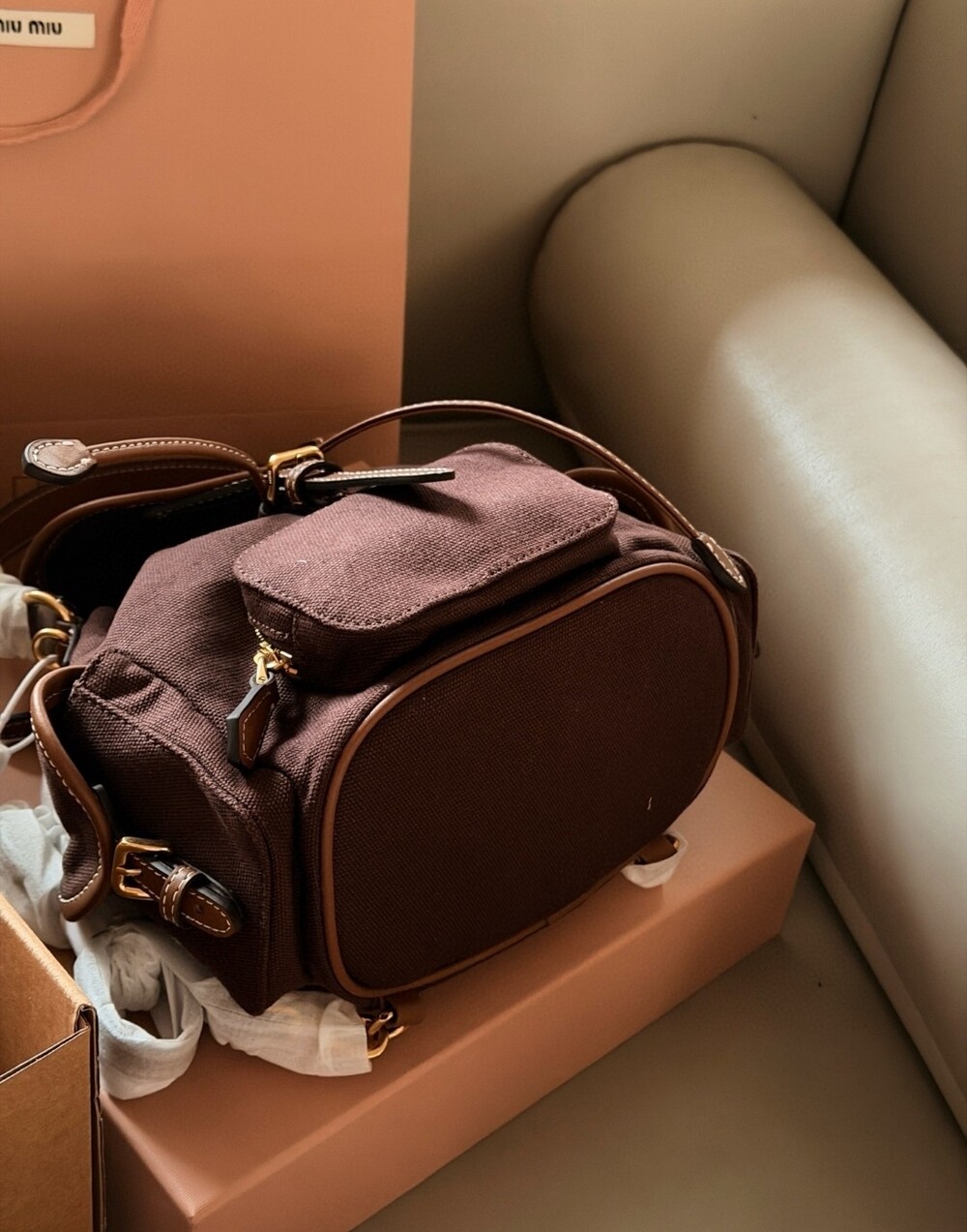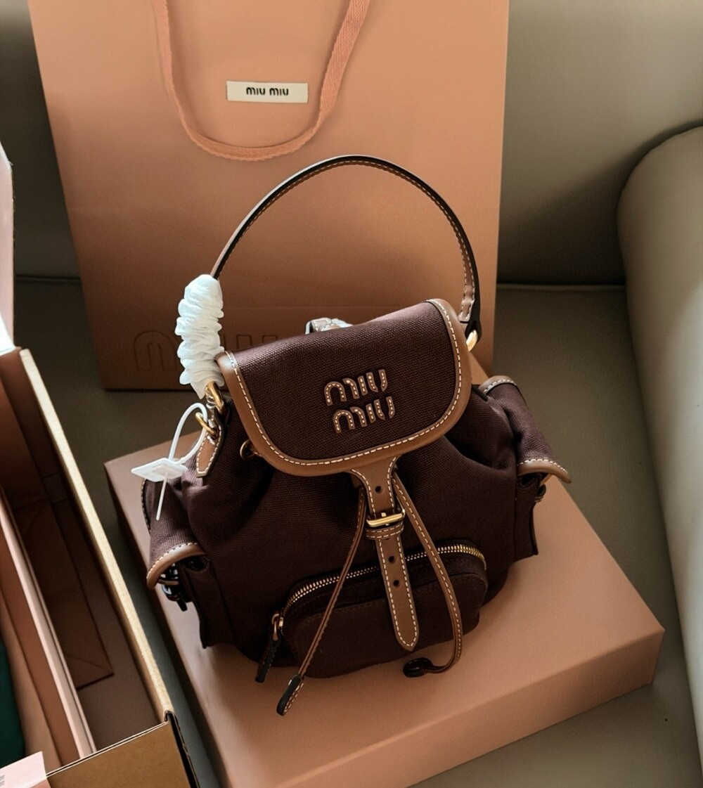 A stylish Miu Miu SS25 mini backpack that perfectly captures the brand’s