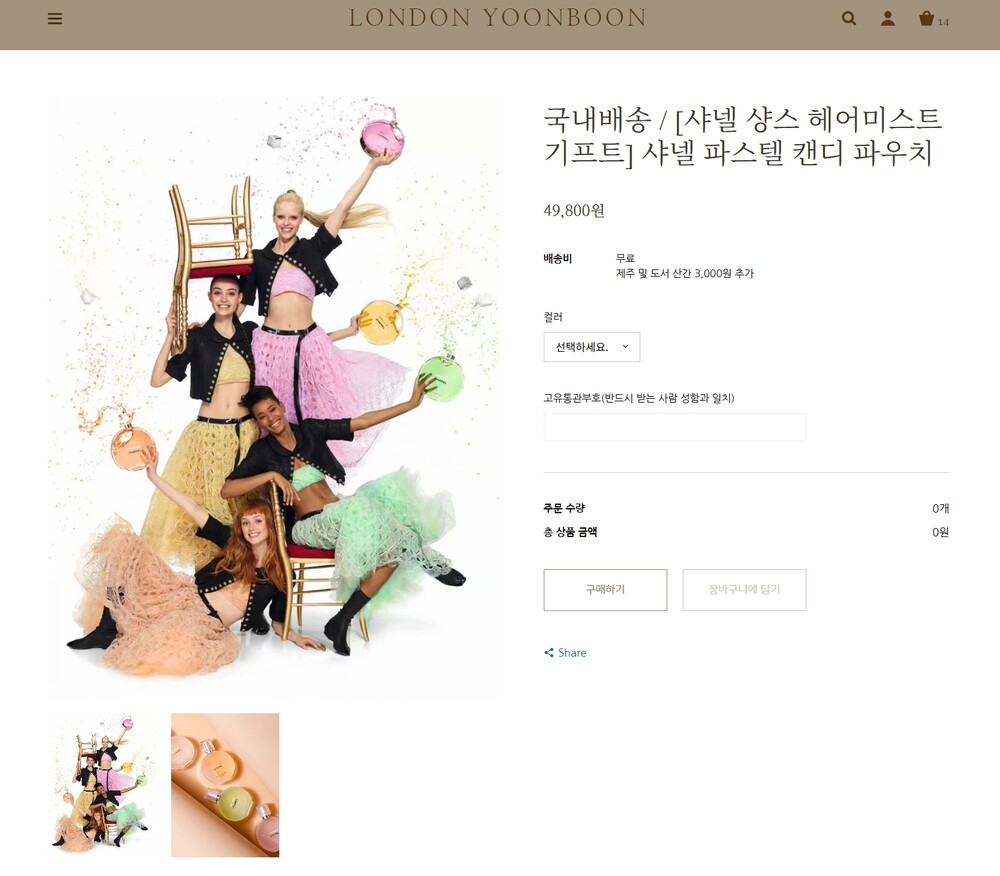 샤넬 샹스 향수모델 증정 파우치로,