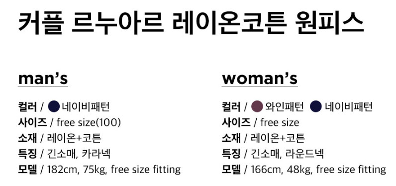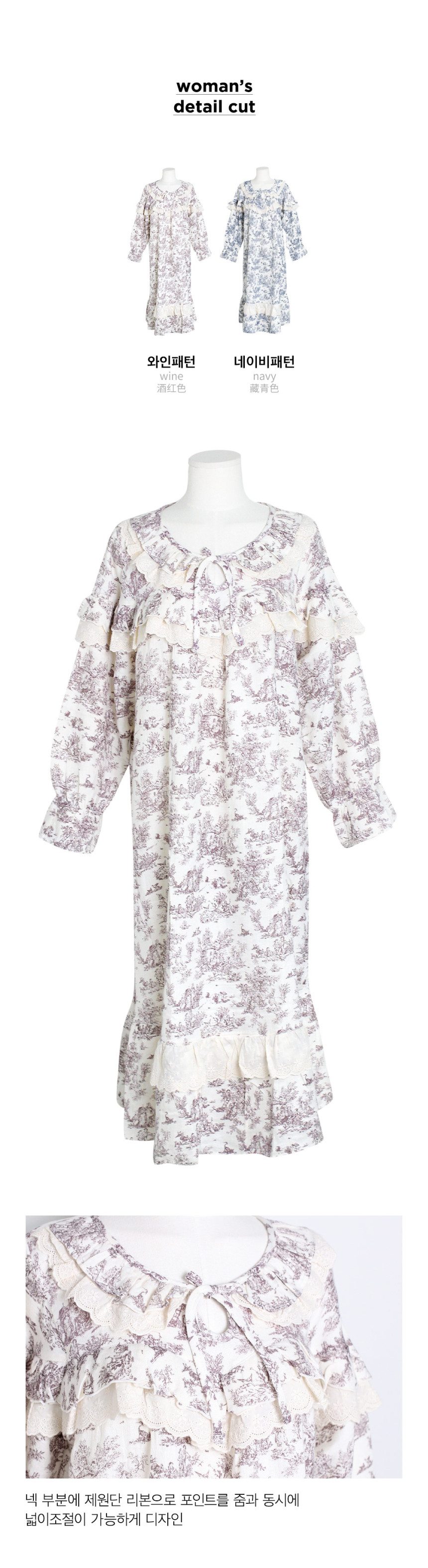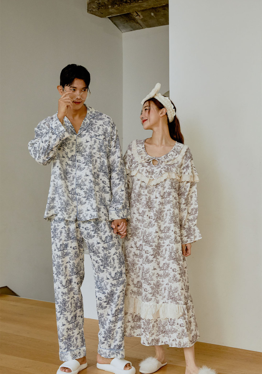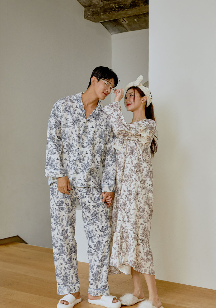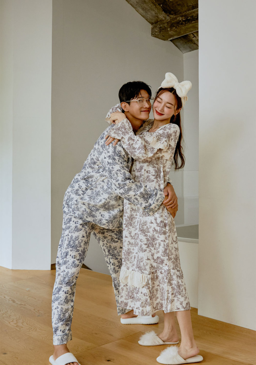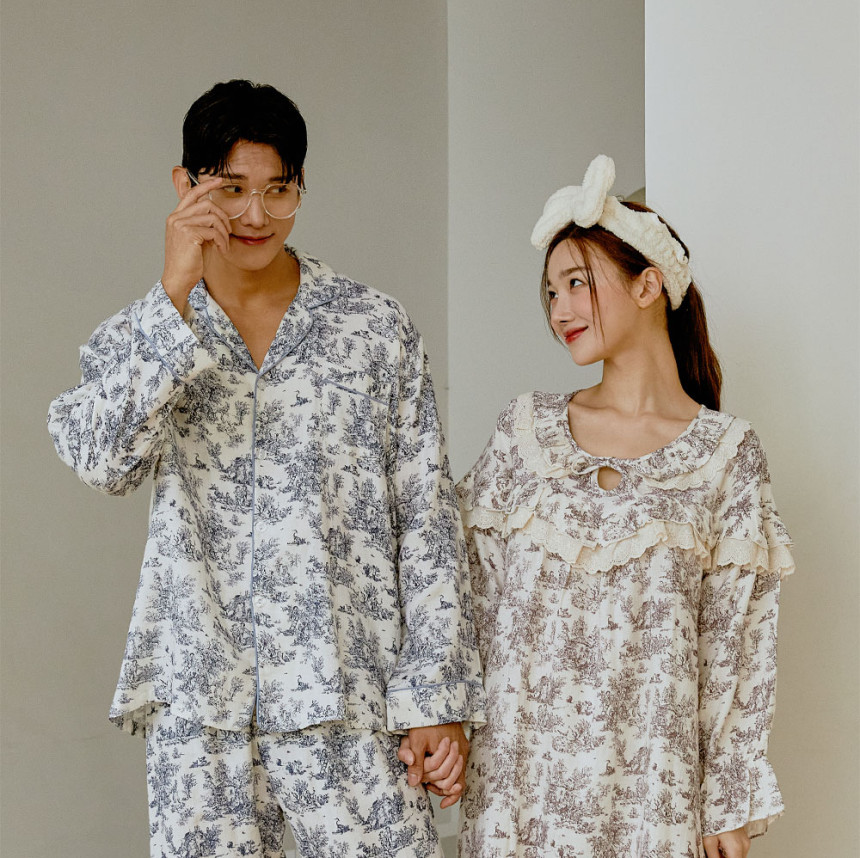 여성 남성 커플 르누아르 원피스 투피스 수면 잠옷