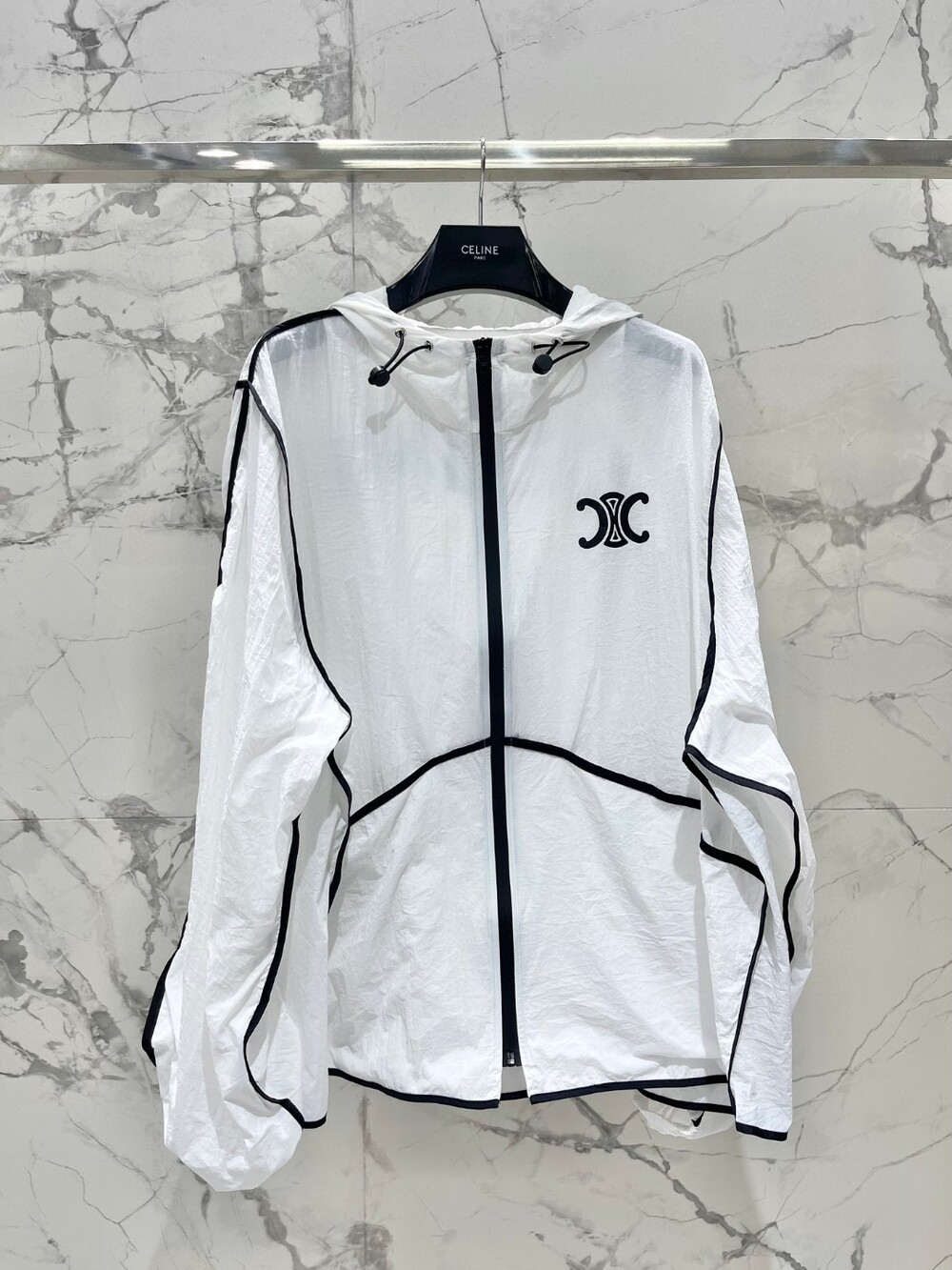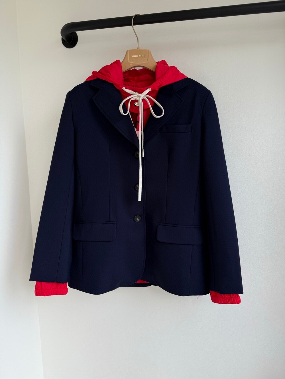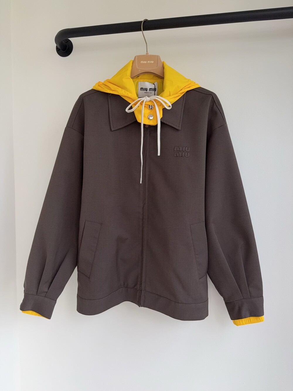 D. 뮤뮤 배색 후드 점퍼