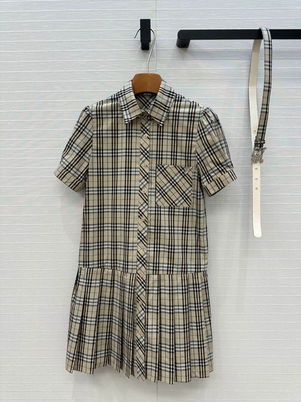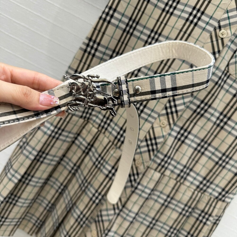 F. BUR 체크 벨트 플리츠원피스