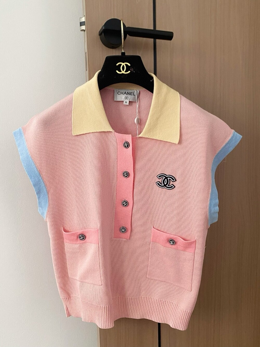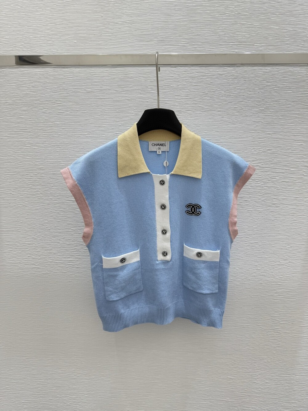 N.CC 파스텔 배색 민소매 니트