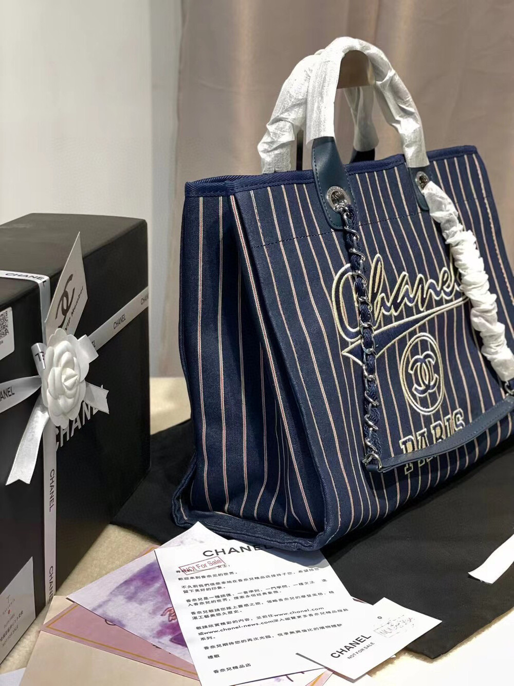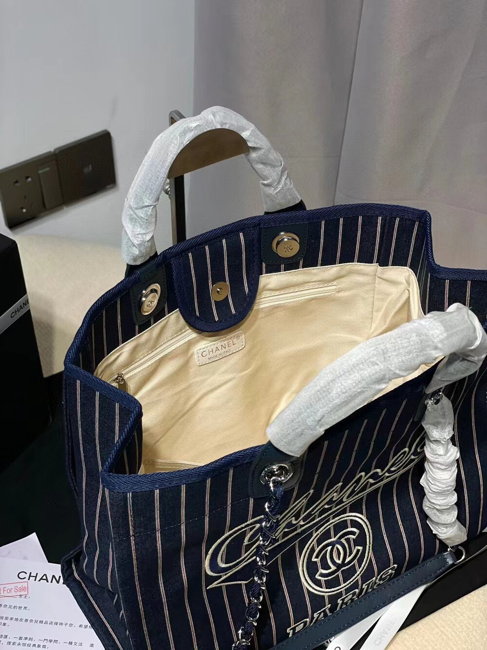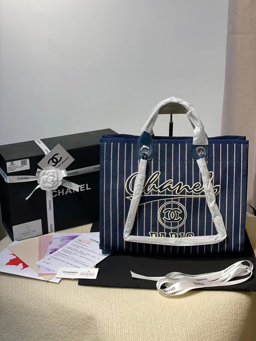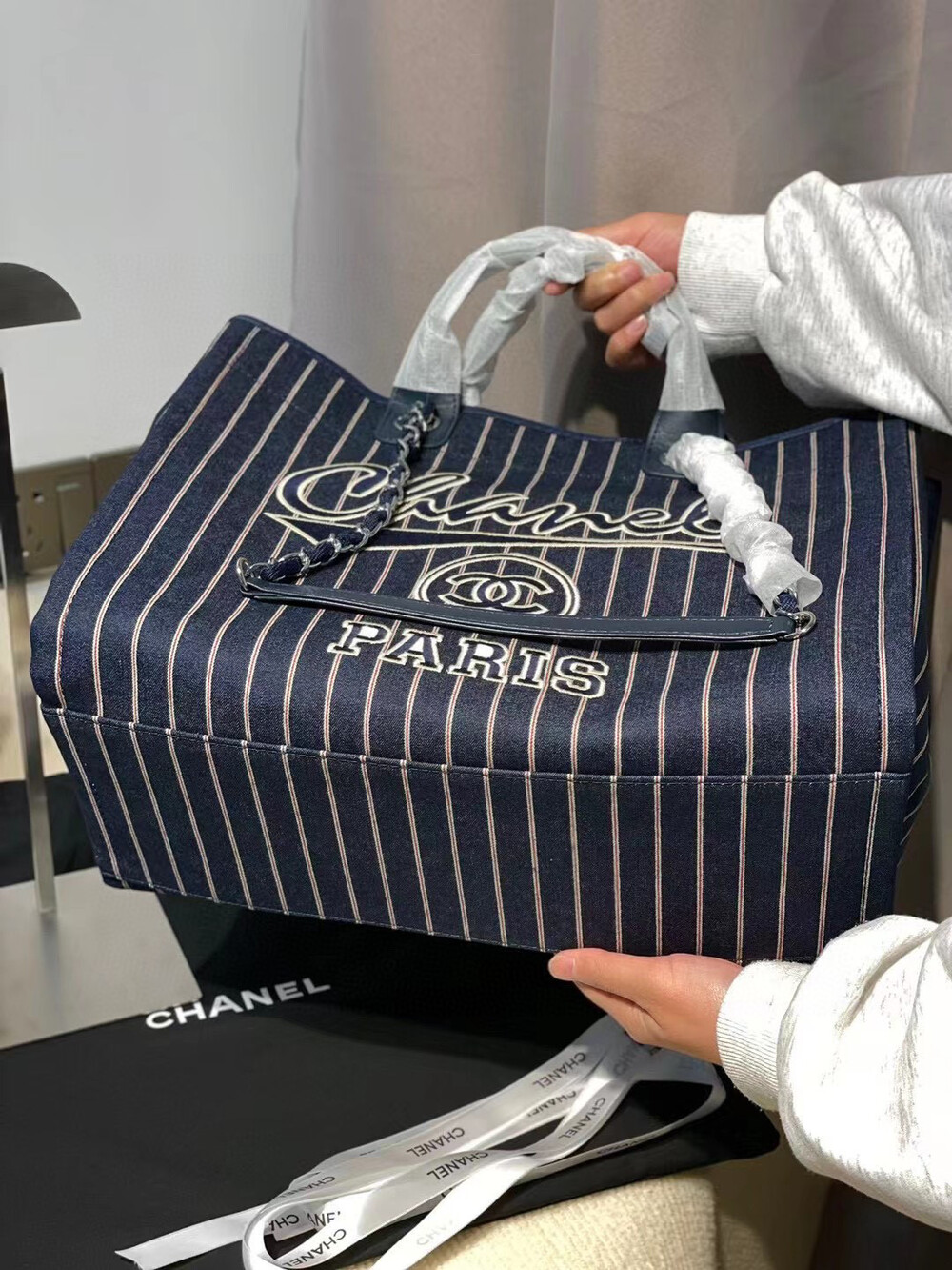 Size: 38 x 30 x 14 cm Beautiful American style beach bag, dark denim fabric easy to take care of, fabric soft, very fitable capacity, not easy toa full set of high-end gift boxes