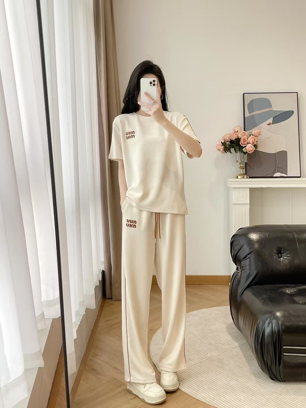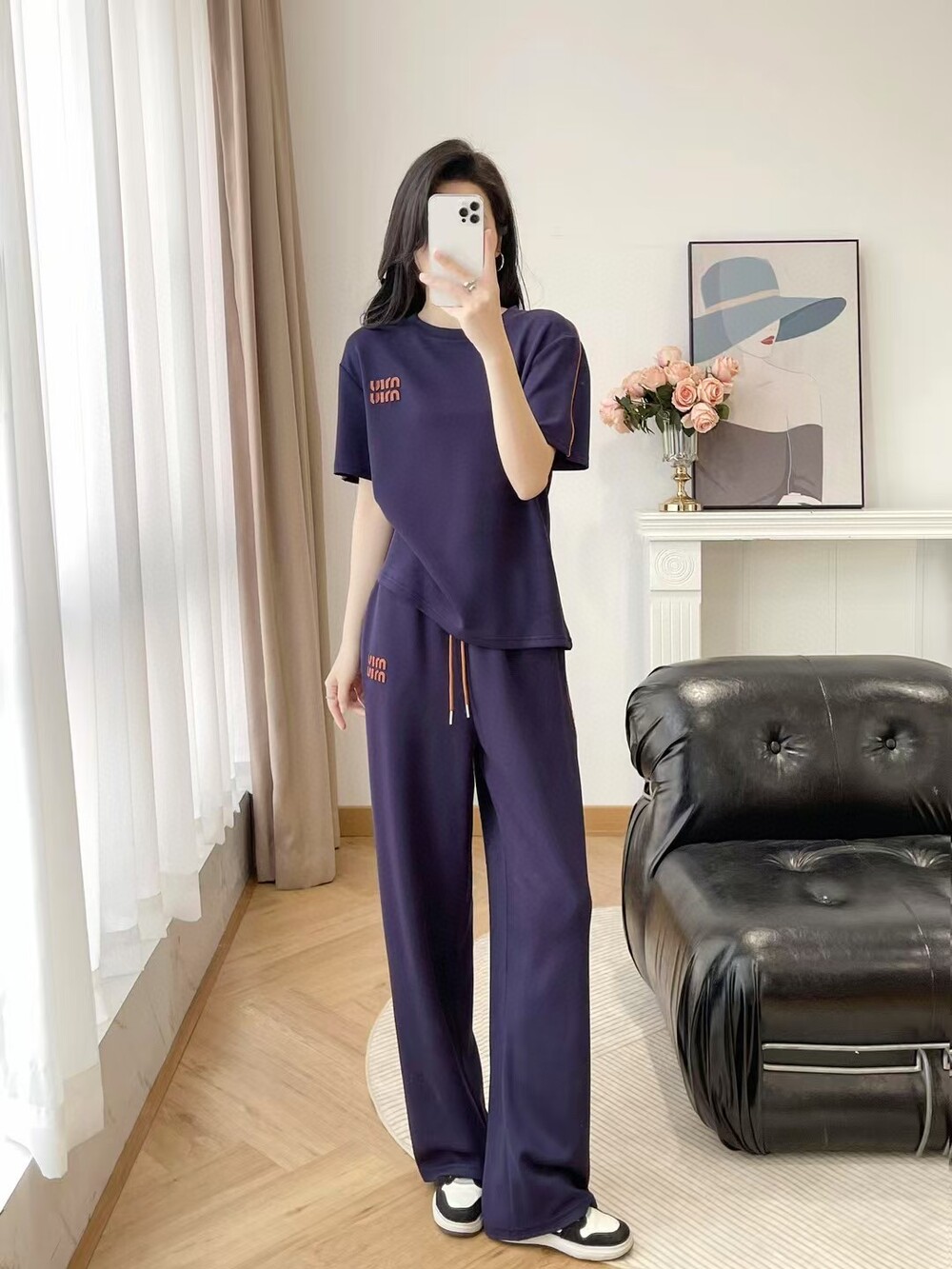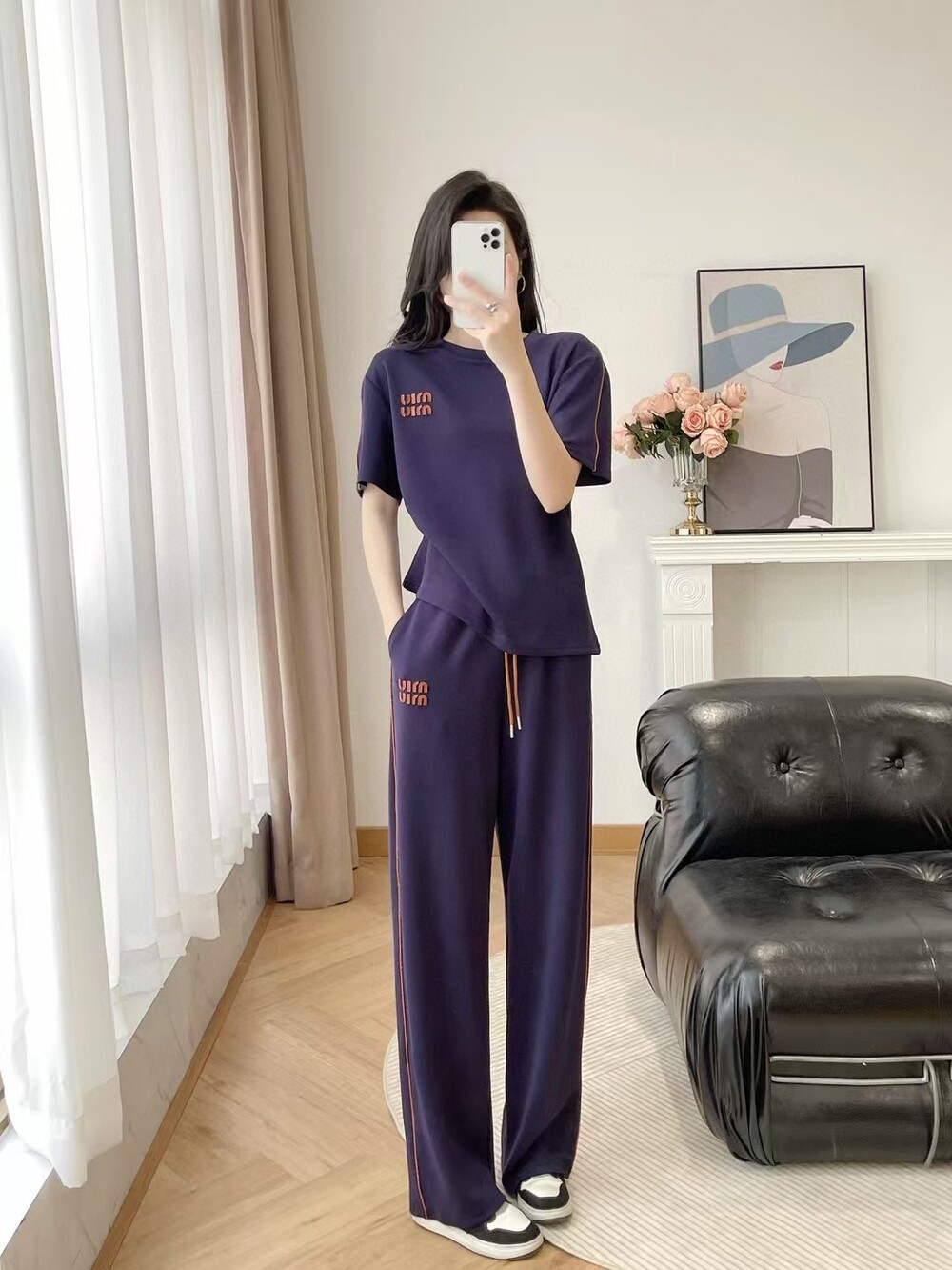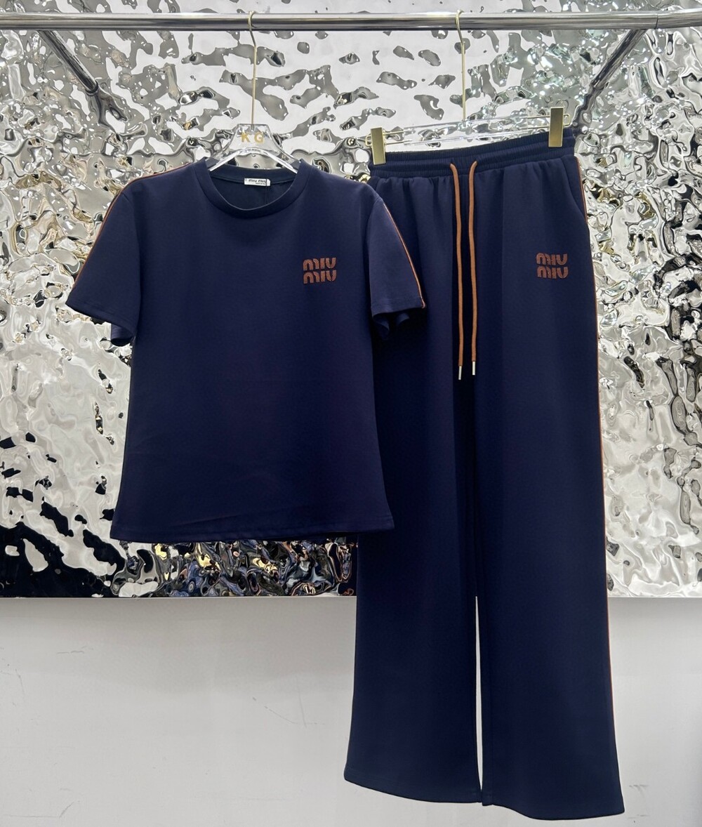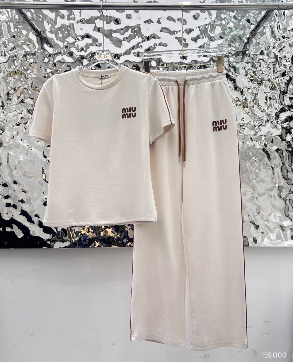 E. 뮤뮤 로고 반팔 팬츠 세트