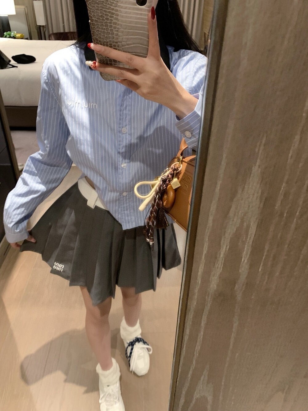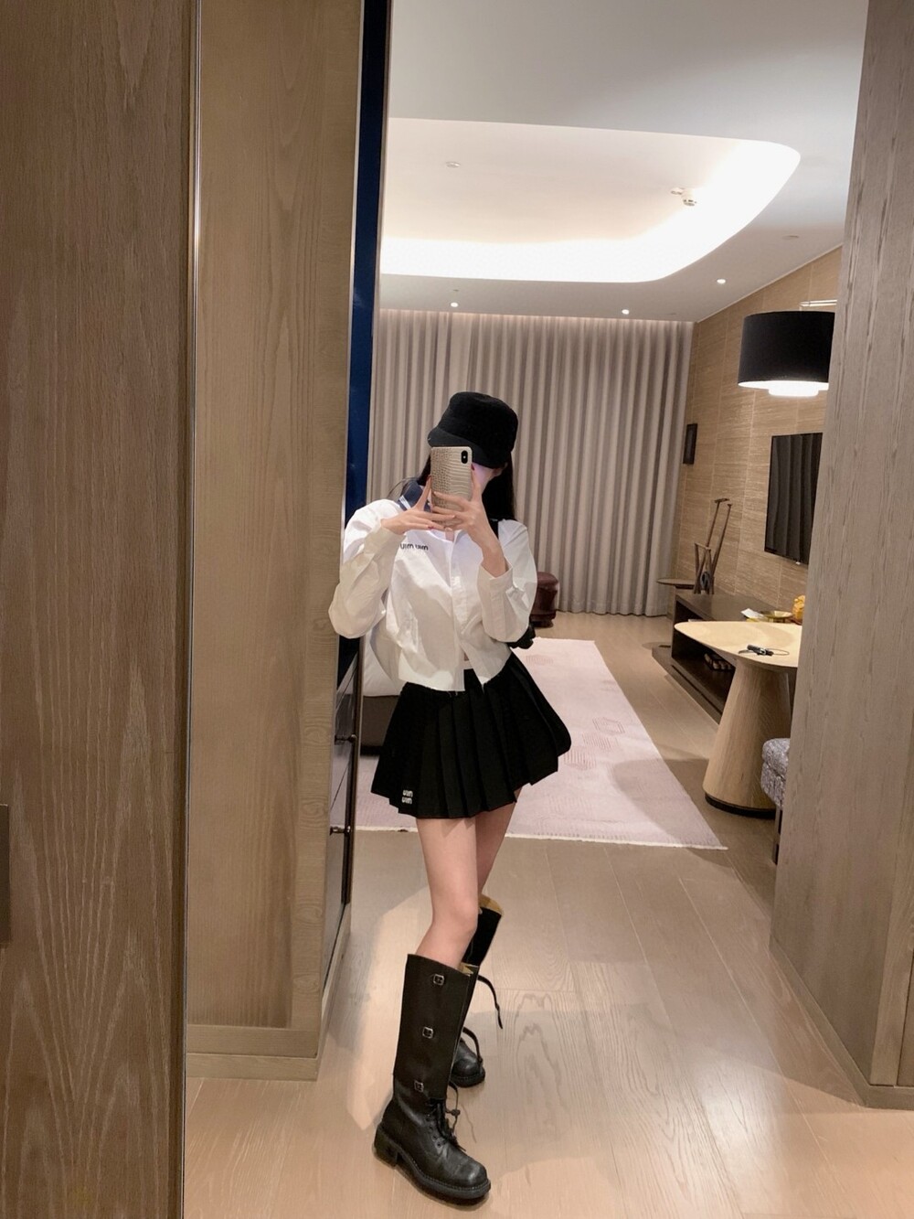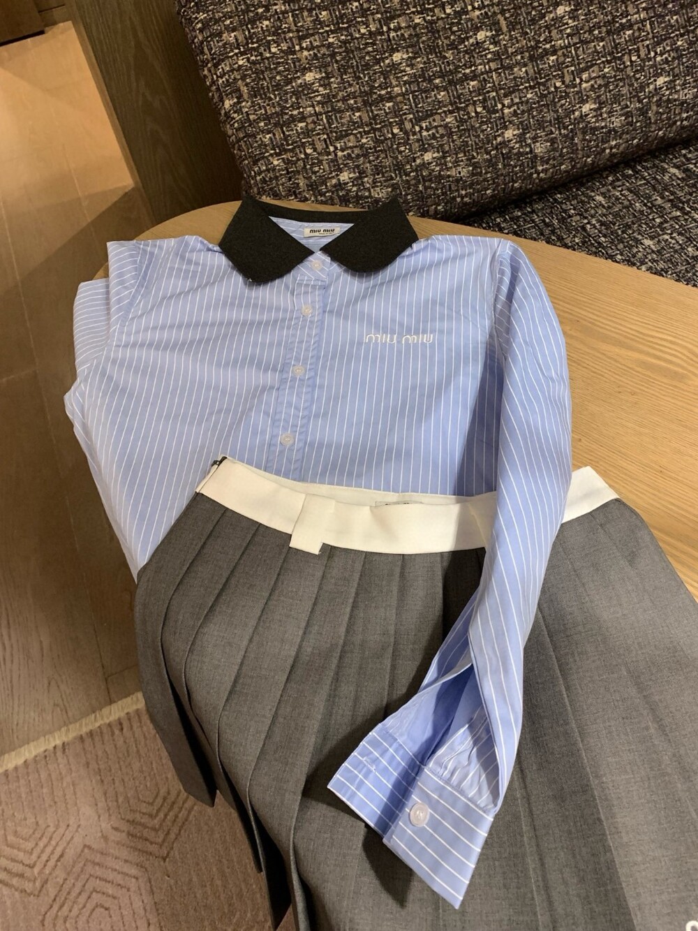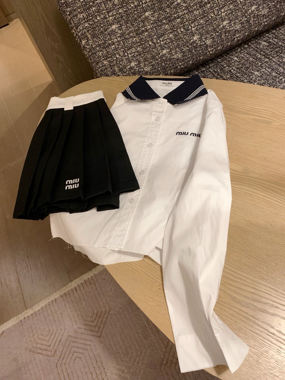 E. 뮤뮤 로고 반팔 팬츠 세트