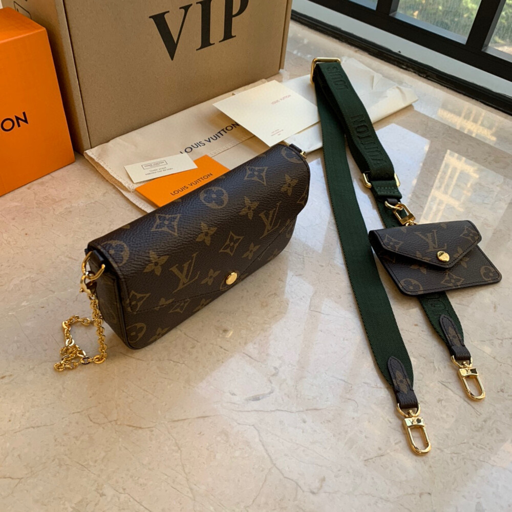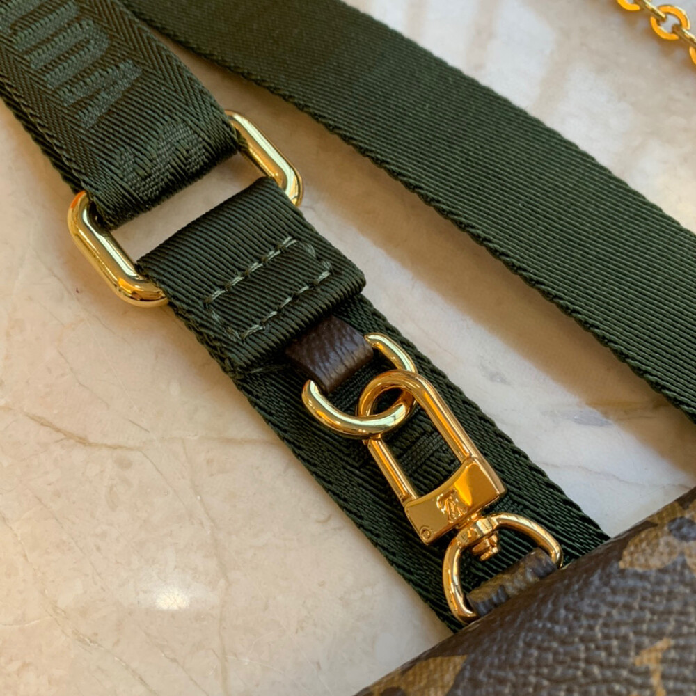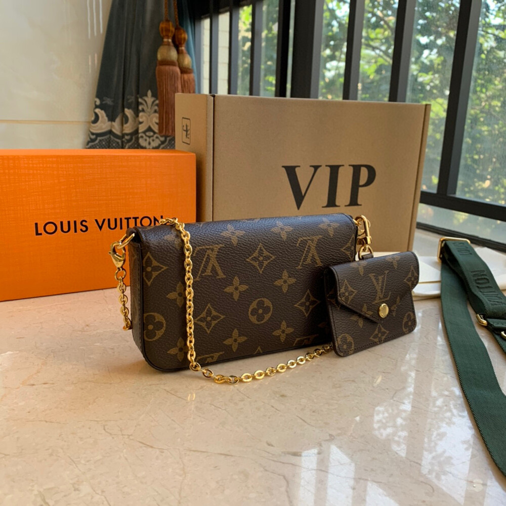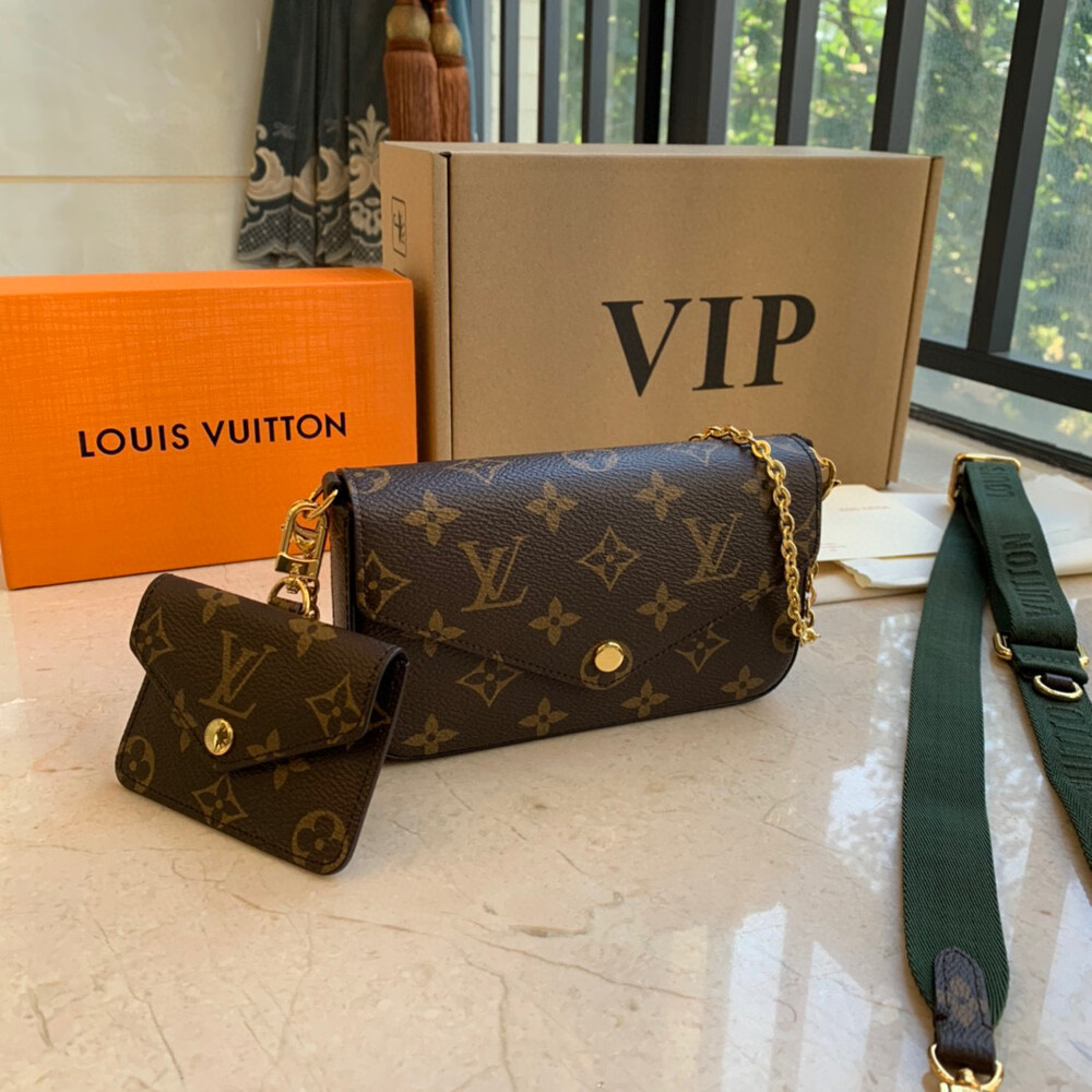 The LV Multi Pochette Felicie, which will be launched in January, looks like a combination of the five-in-one and the old three-in-one launched in 19 bag + coin purse + adjustable nylon shoulder strap + hardware chain 2 bags and 2 shoulder straps. Each part can be disassembled, and the shoulder strap can be adjusted at will. Take a good look and look good on your backMaterial: Original single old flower material + first layer