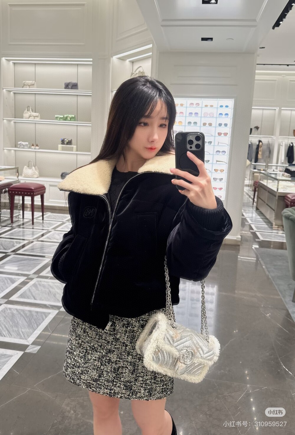 B. GG 양털 카라 벨벳 점퍼