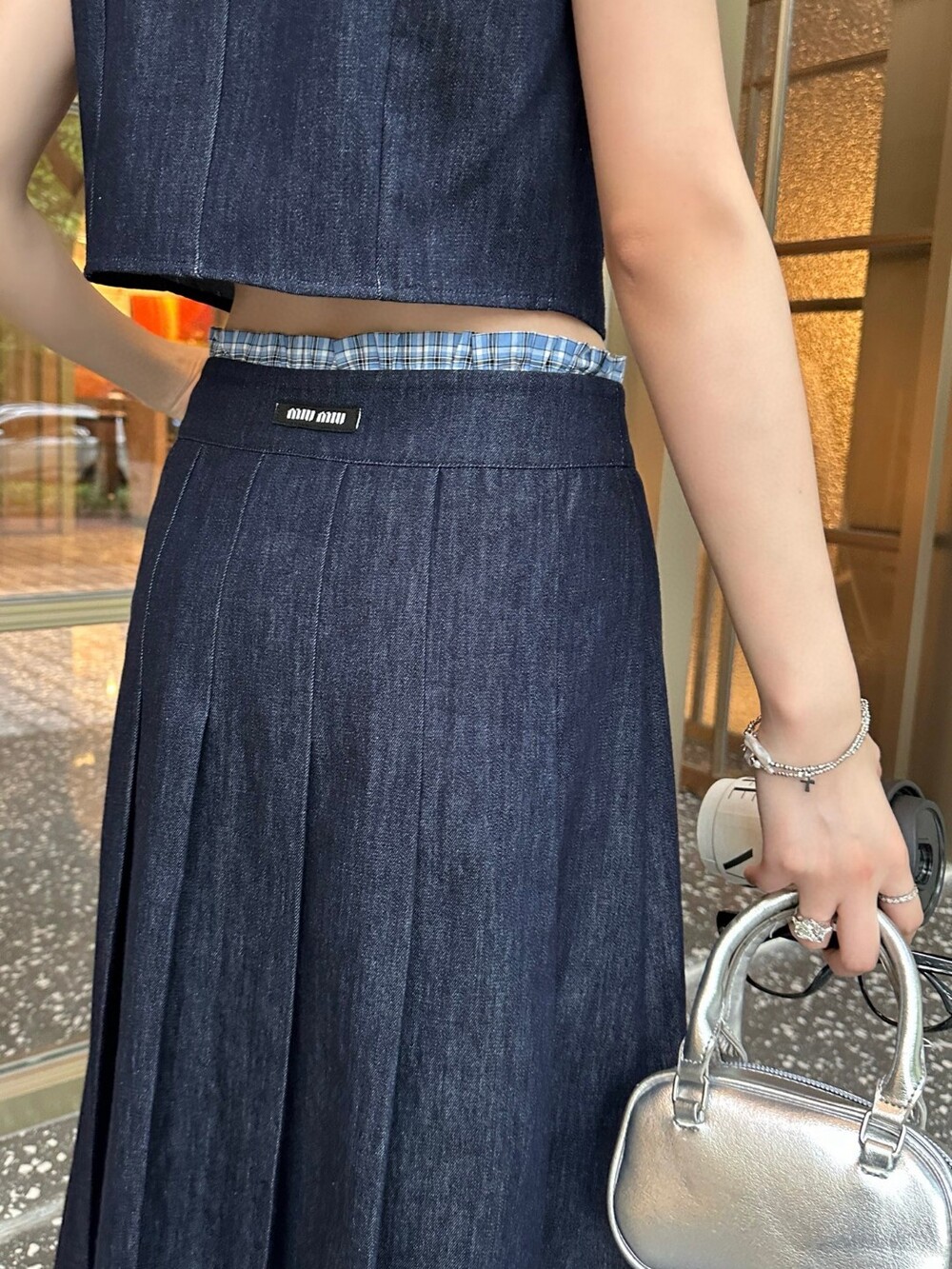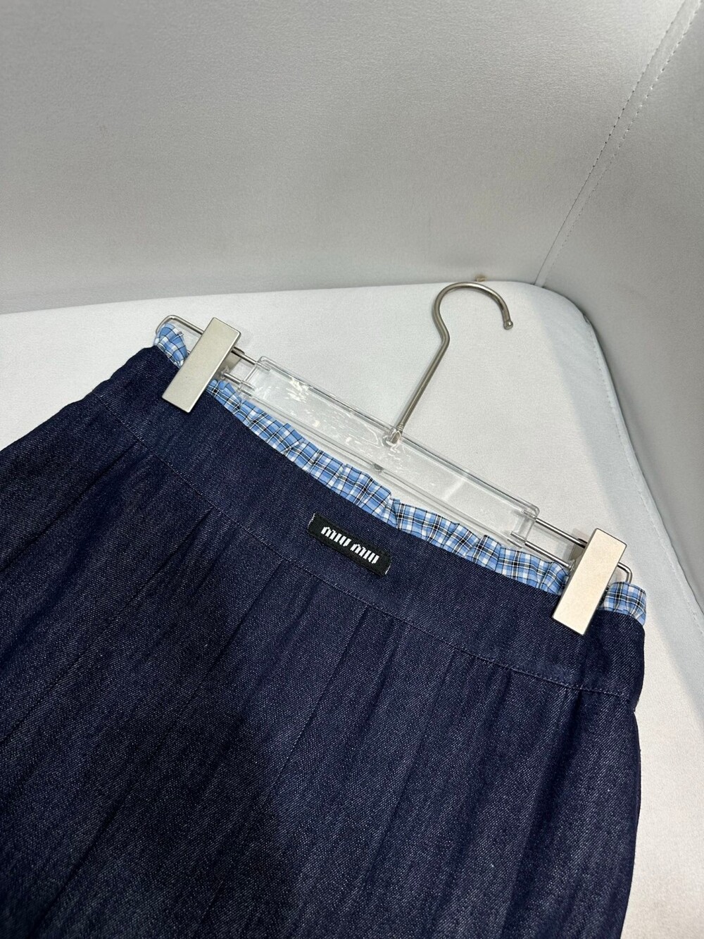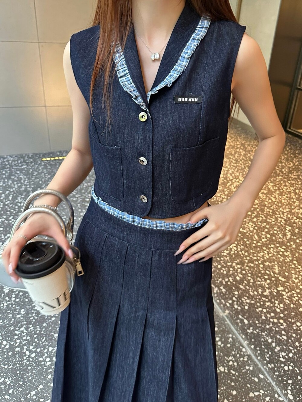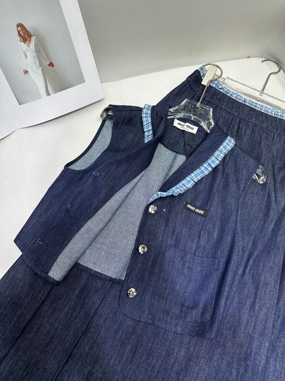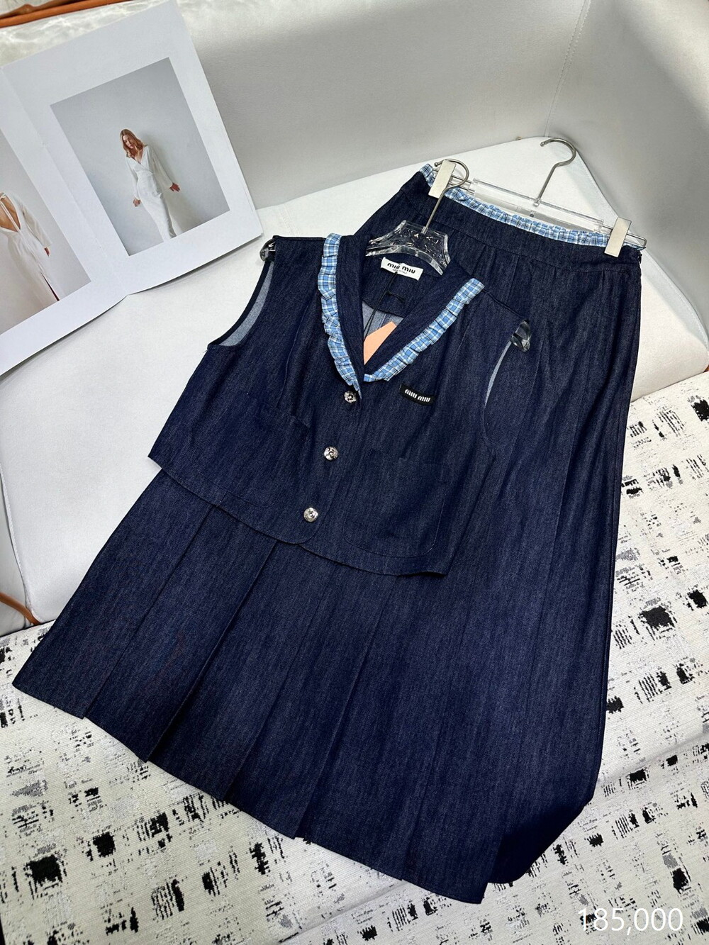 A. 뮤뮤 데님 버튼 슬리브리스 셔츠 원피스
