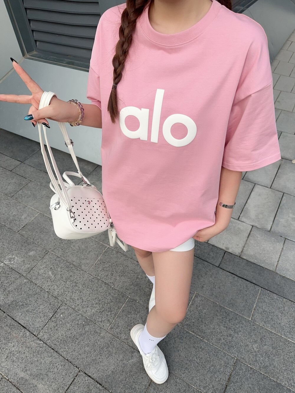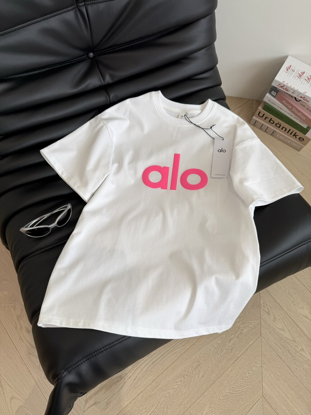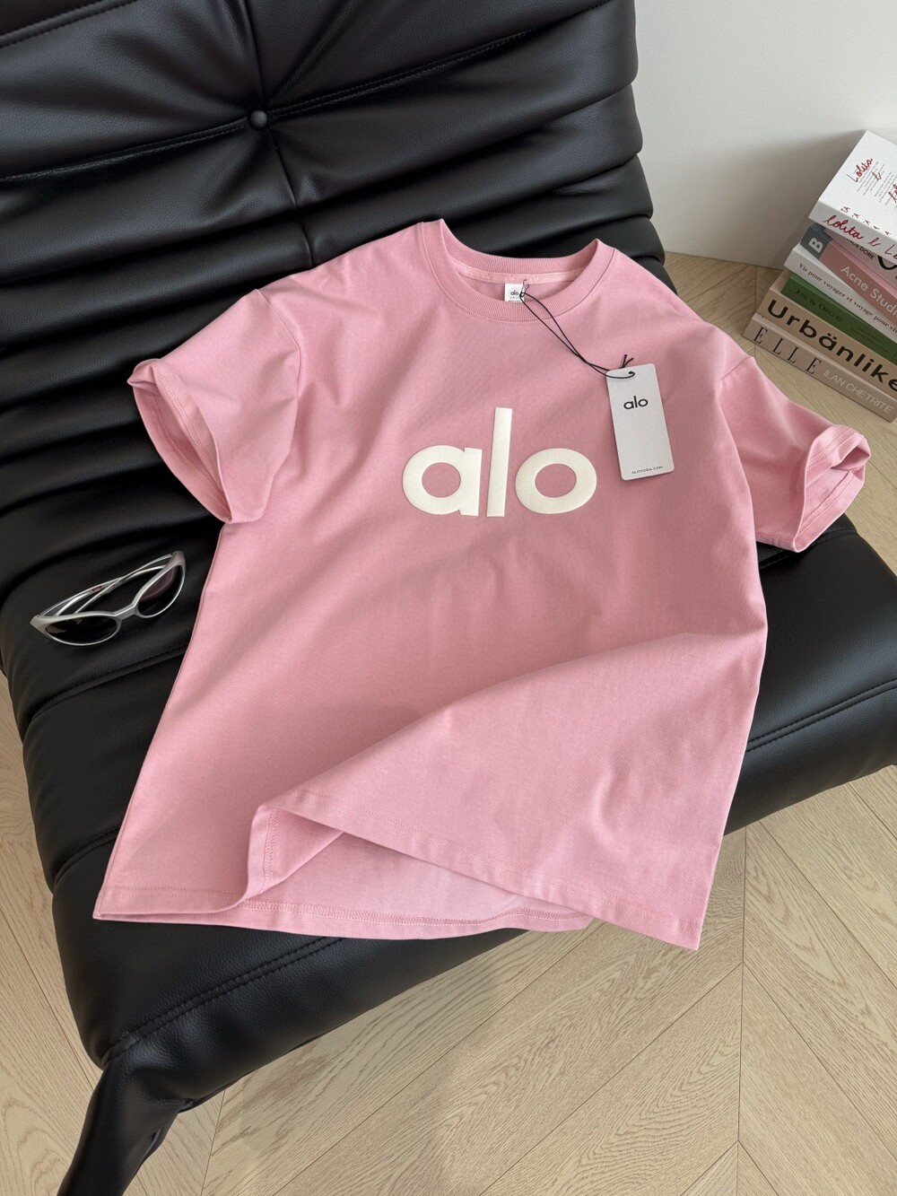 B. alo 로고 슬리브리스 탑 - 핑크