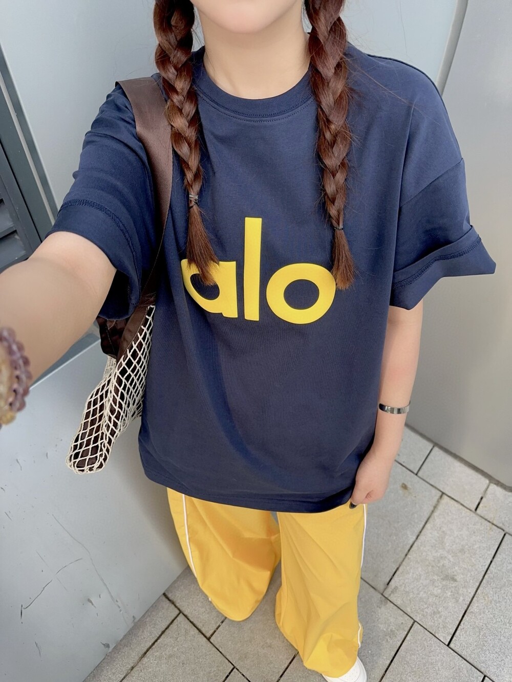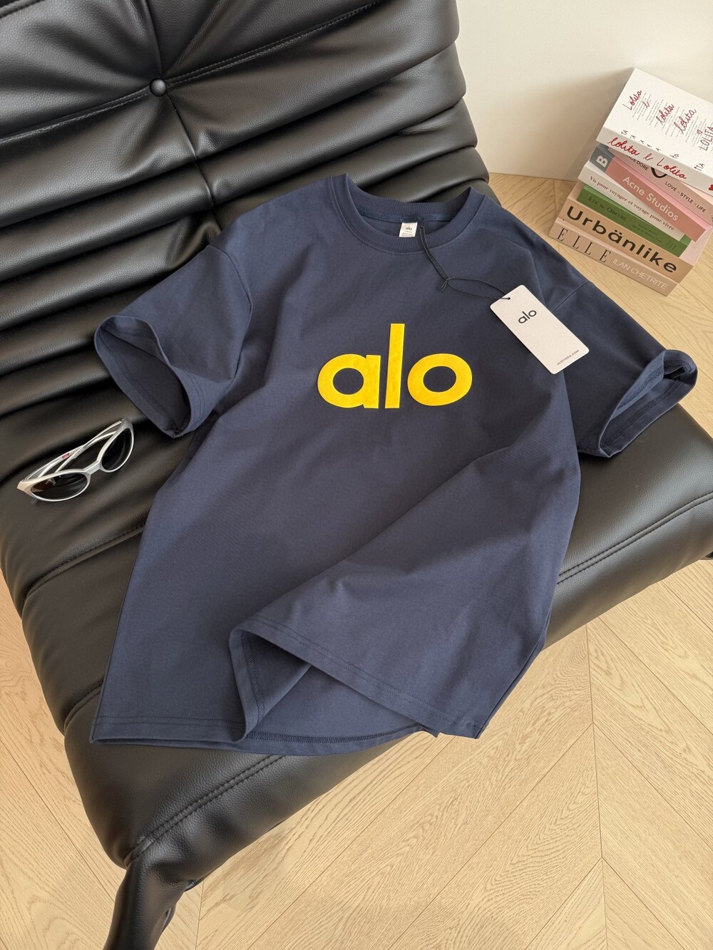 B. alo 로고 슬리브리스 탑 - 네이비