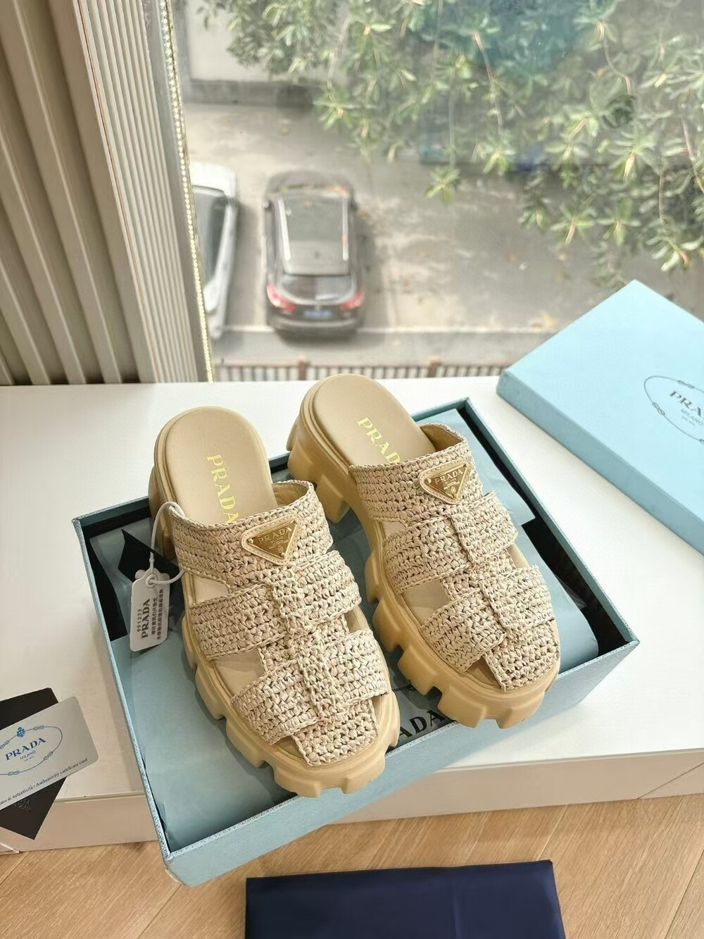 C. PR 라피아 슬라이드 - 베이지