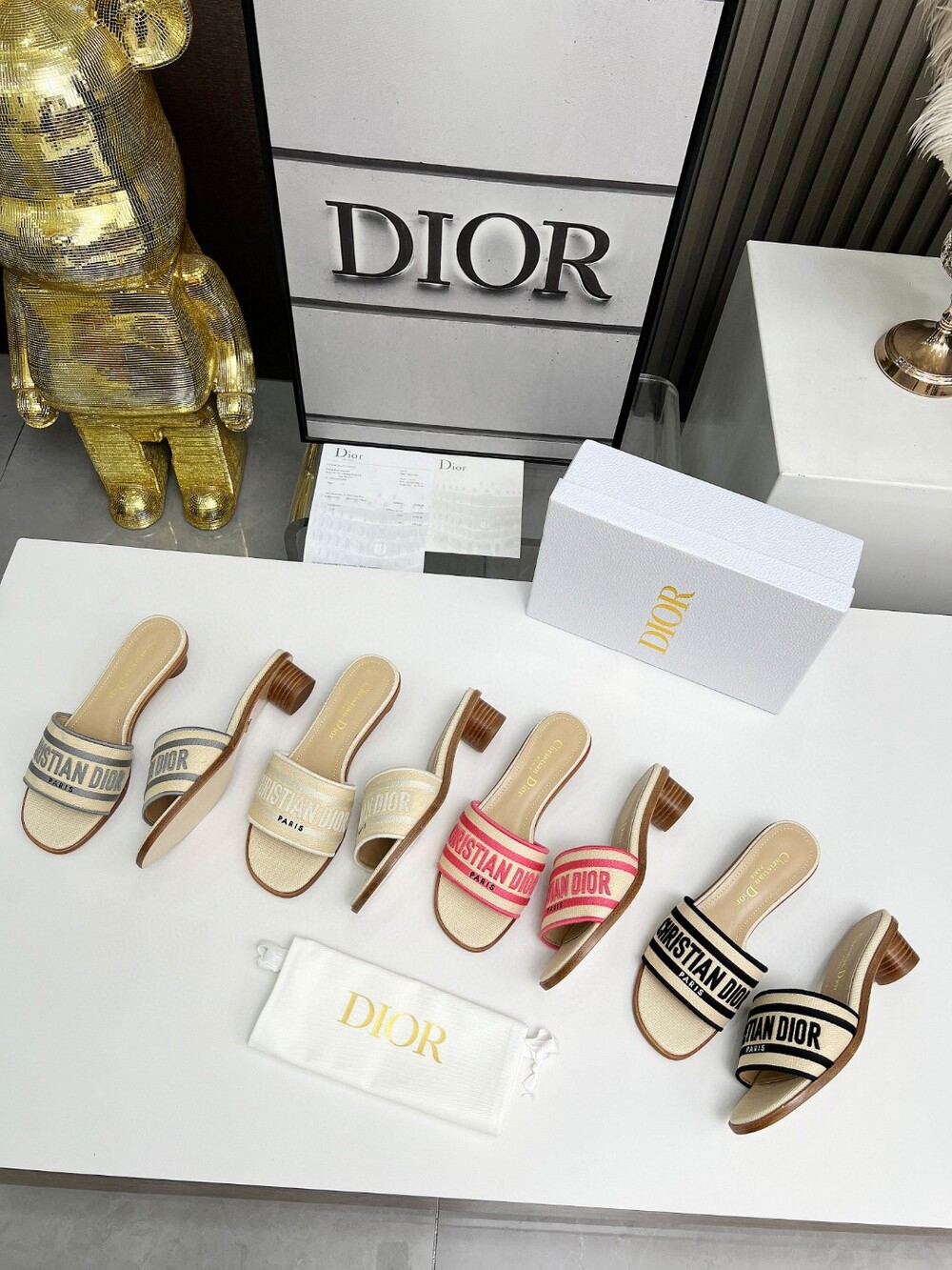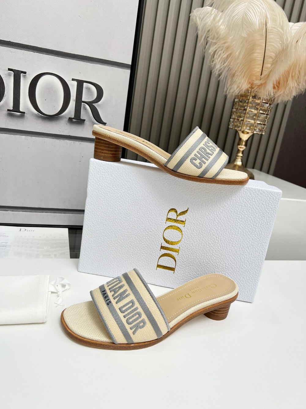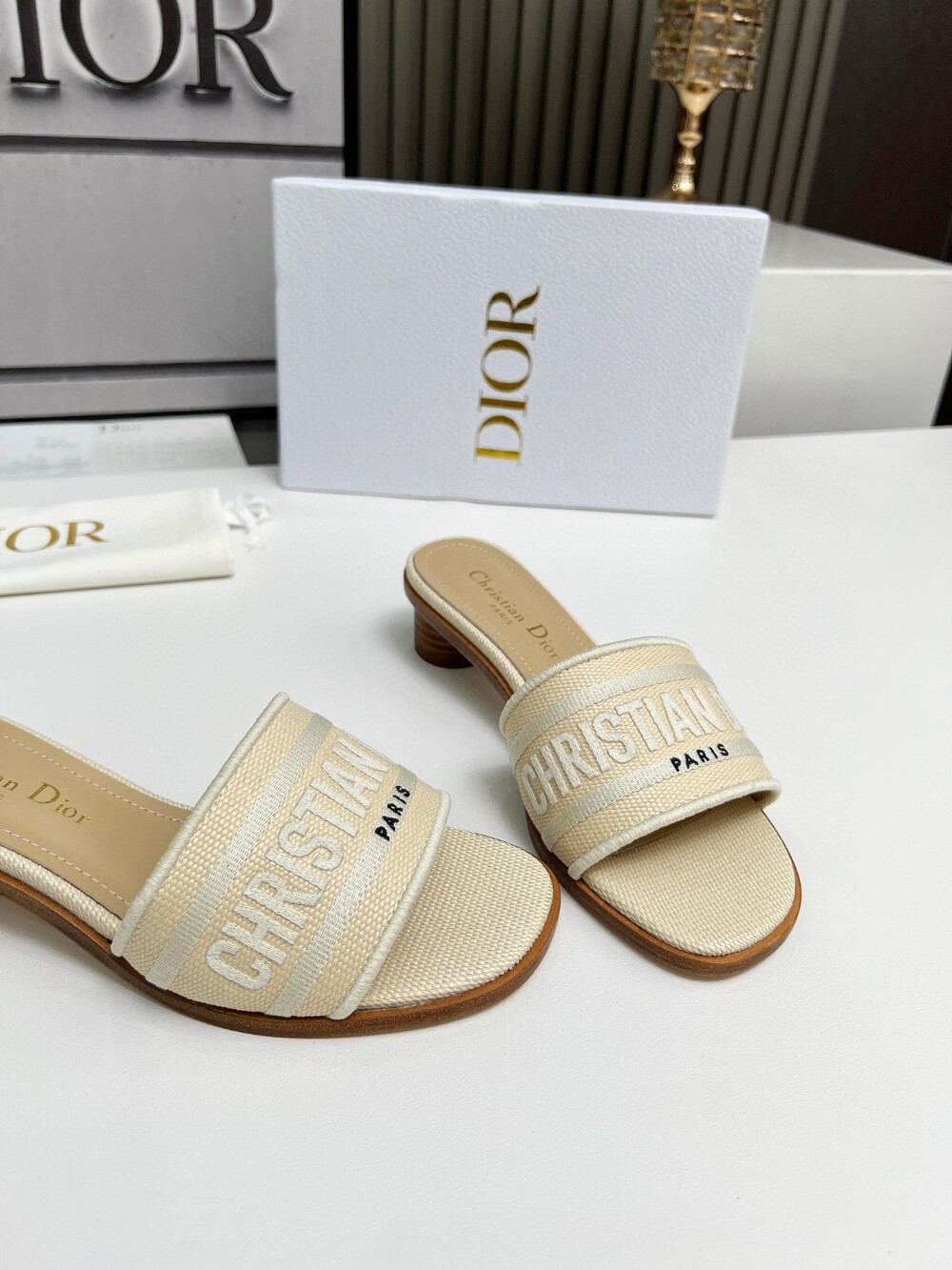 D. 디오르 라탄 슬리퍼 1cm - 크림