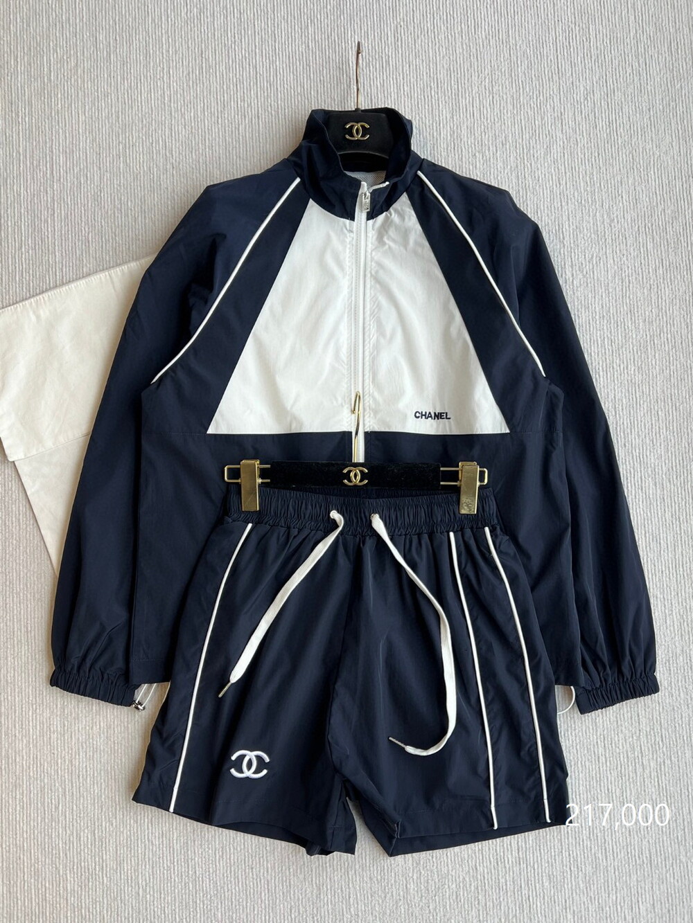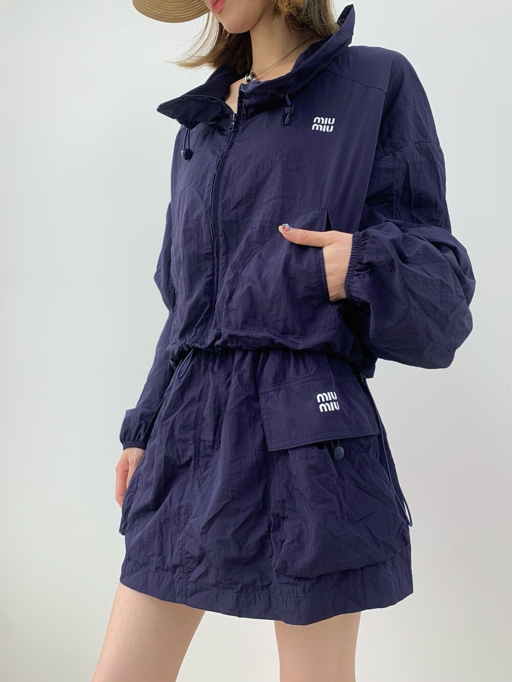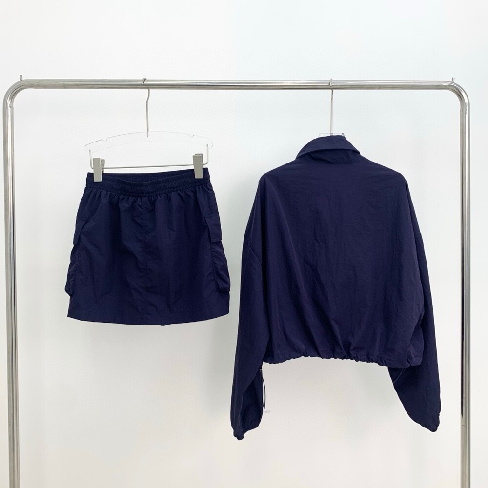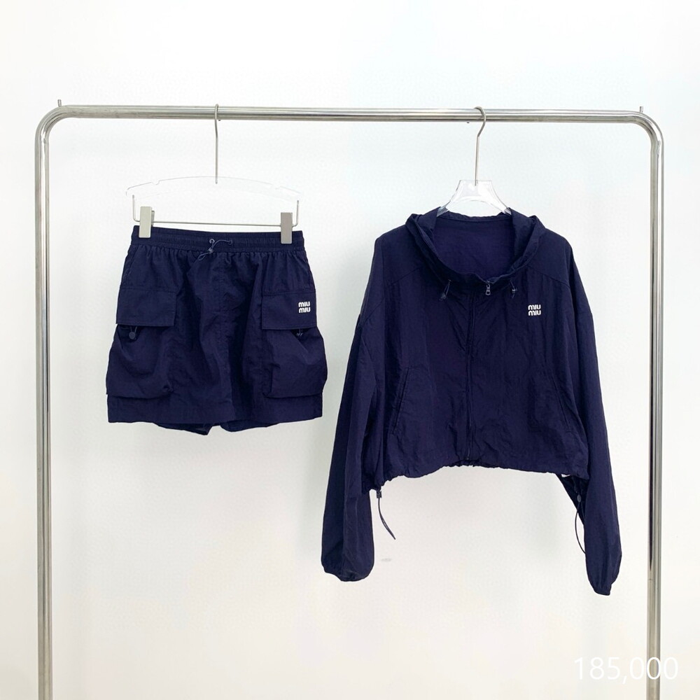 E. 뮤뮤 윈드 브레이커 투피스 셋업 - 네이비