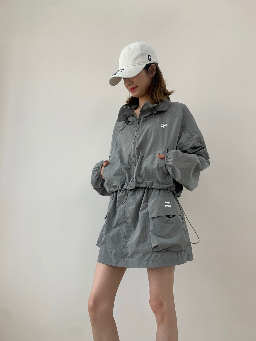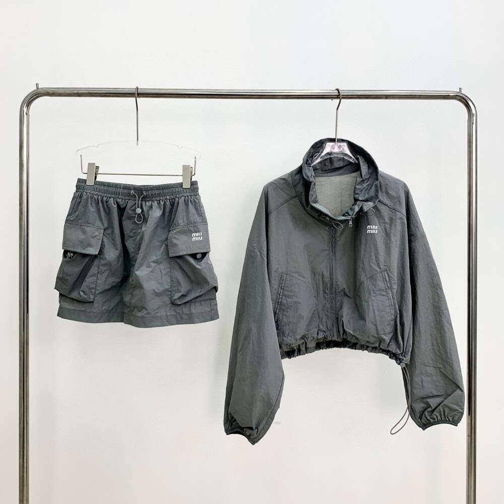 E. 뮤뮤 윈드 브레이커 투피스 셋업 - 그레이