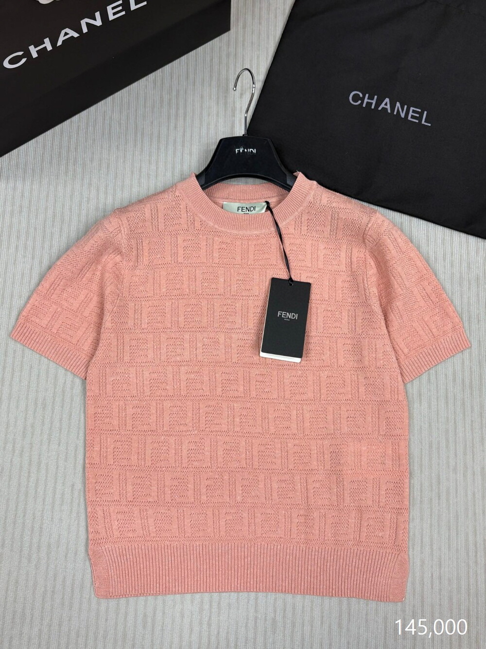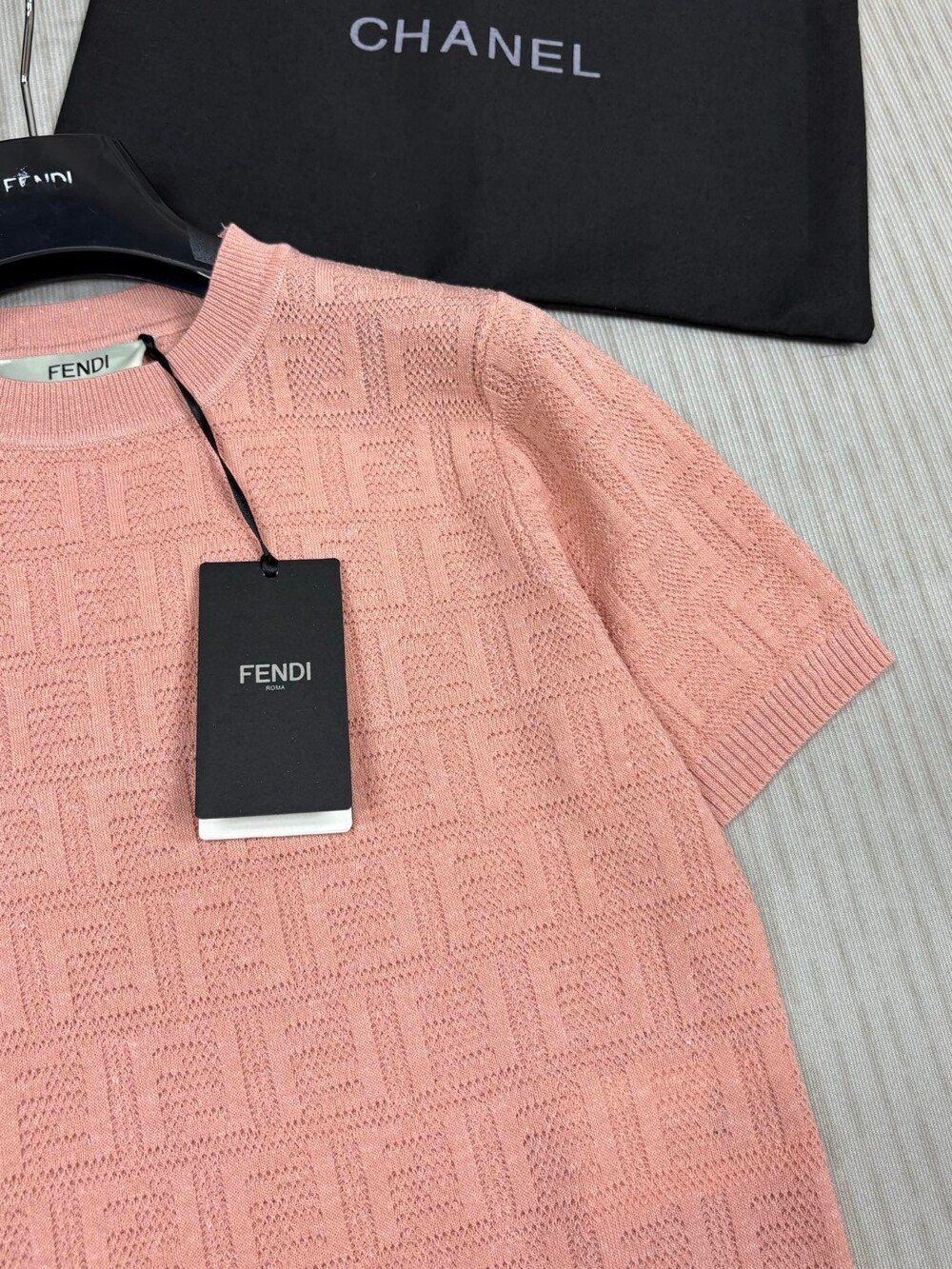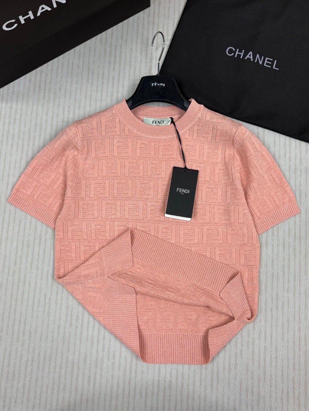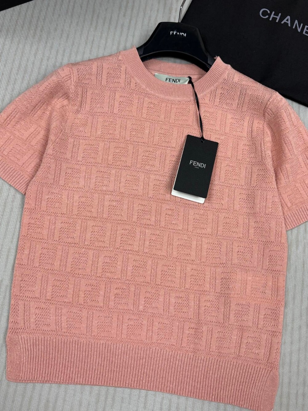 F. FF 패턴 반팔 니트 - 핑크