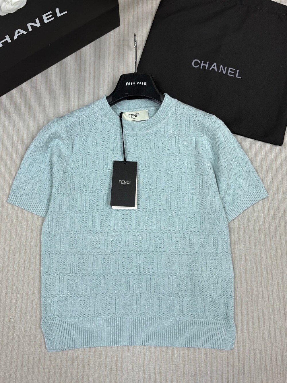 F. FF 패턴 반팔 니트 - 블루