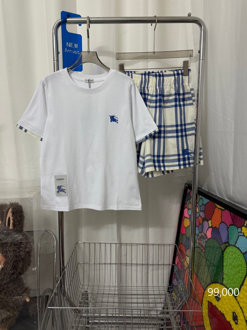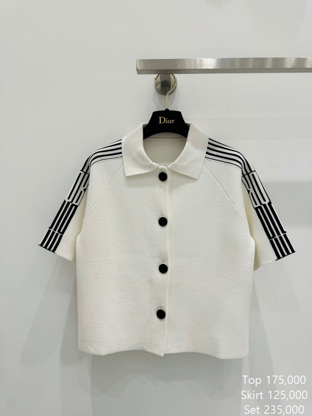 G. 디오르 배색 스트라이프 버튼 반소매 화이트 - Set