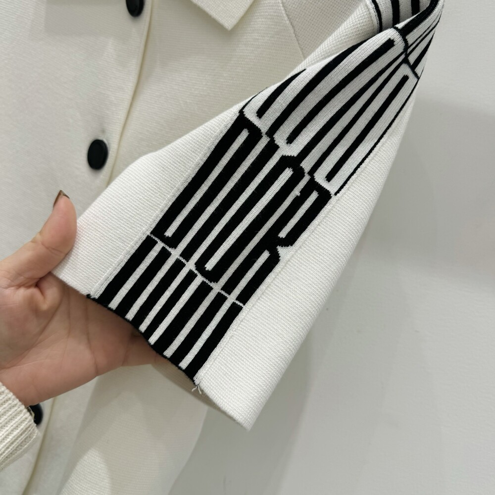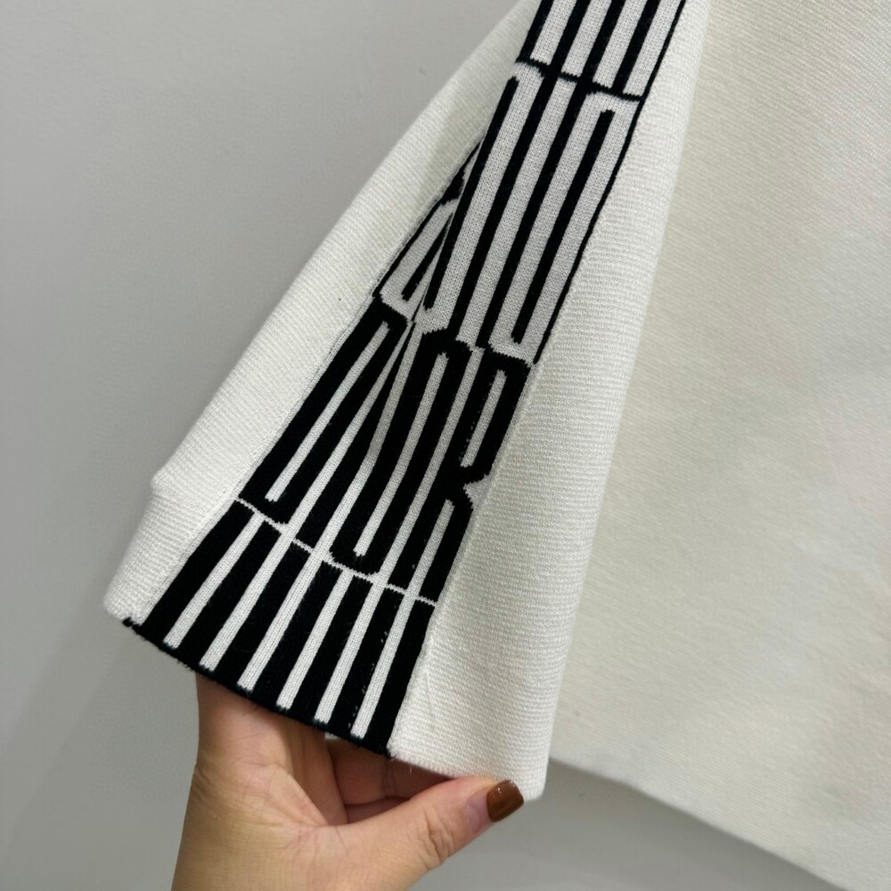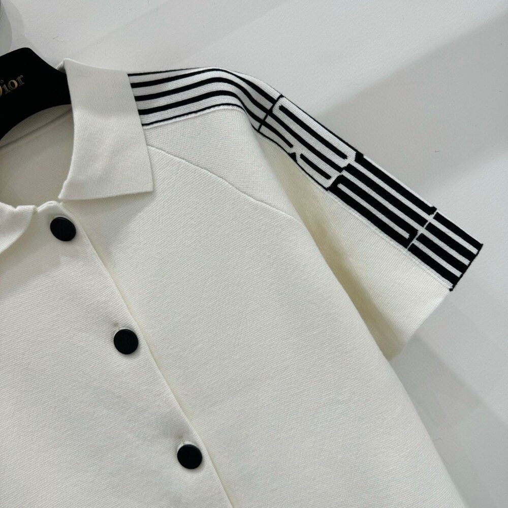 G. 디오르 배색 스트라이프 버튼 반소매 화이트 - Skirt