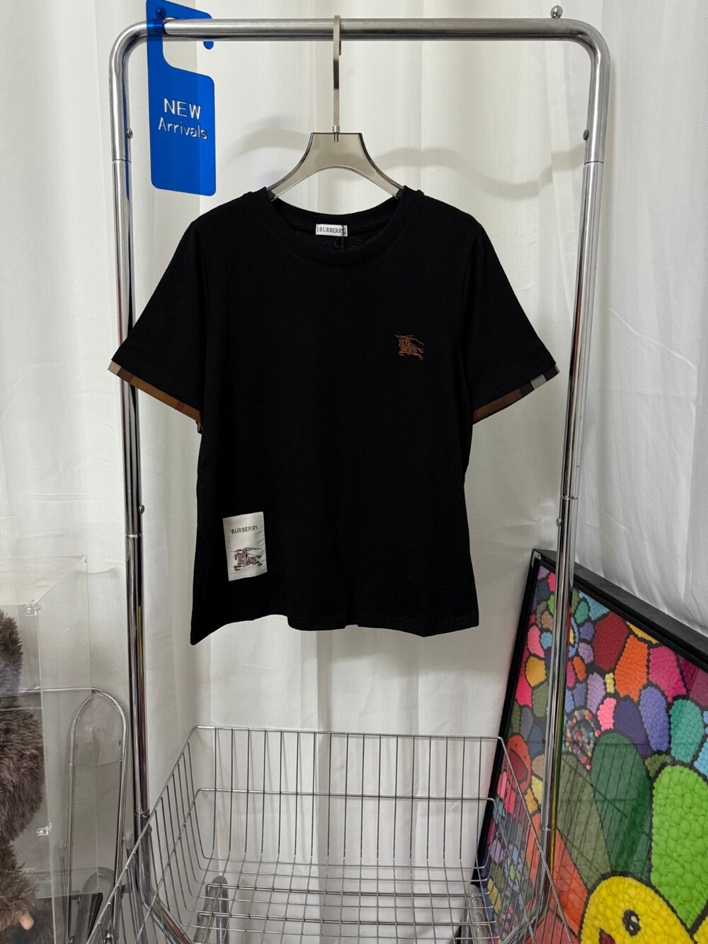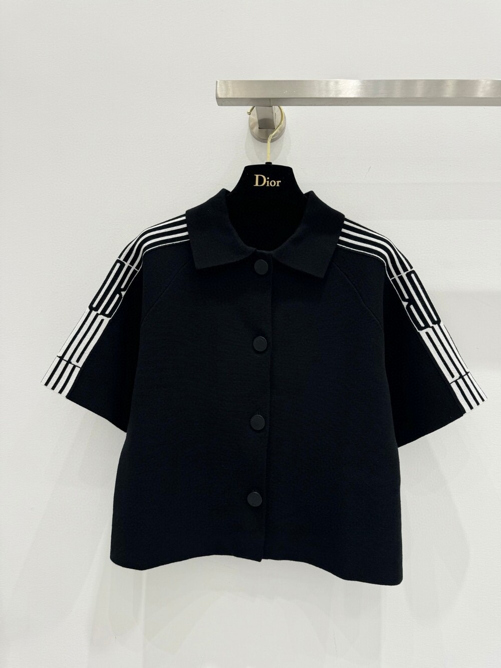G. 디오르 배색 스트라이프 버튼 반소매 블랙 - Top