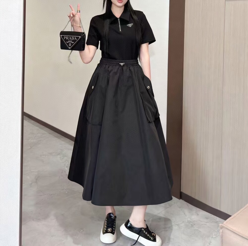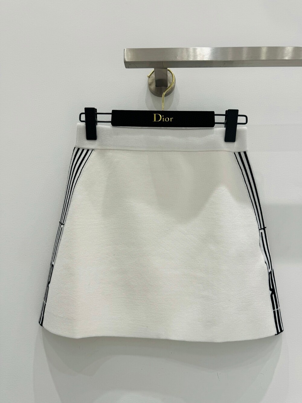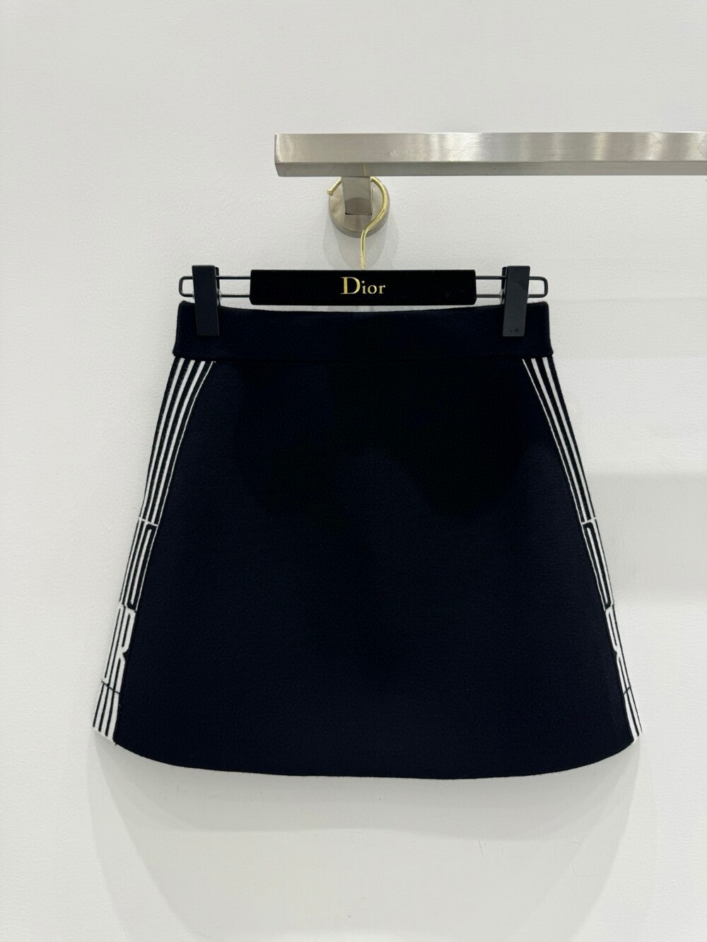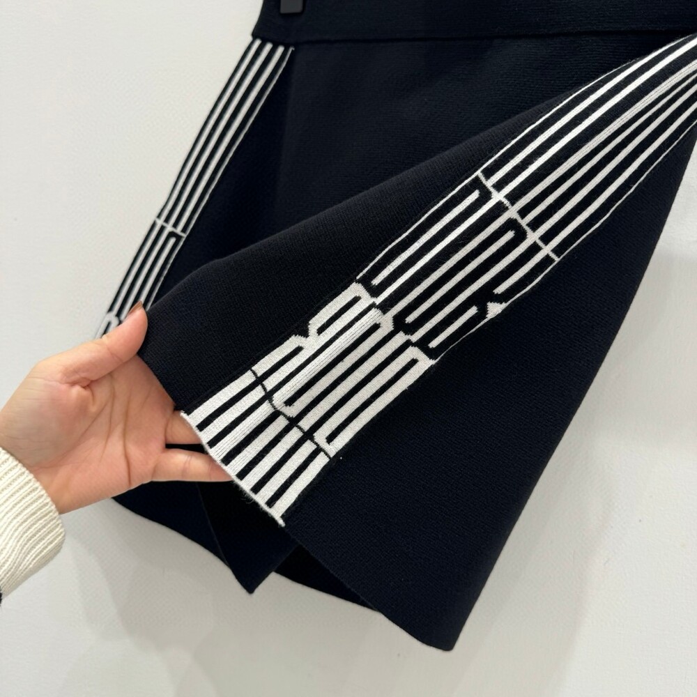 G. 디오르 배색 스트라이프 버튼 반소매 블랙 - Skirt