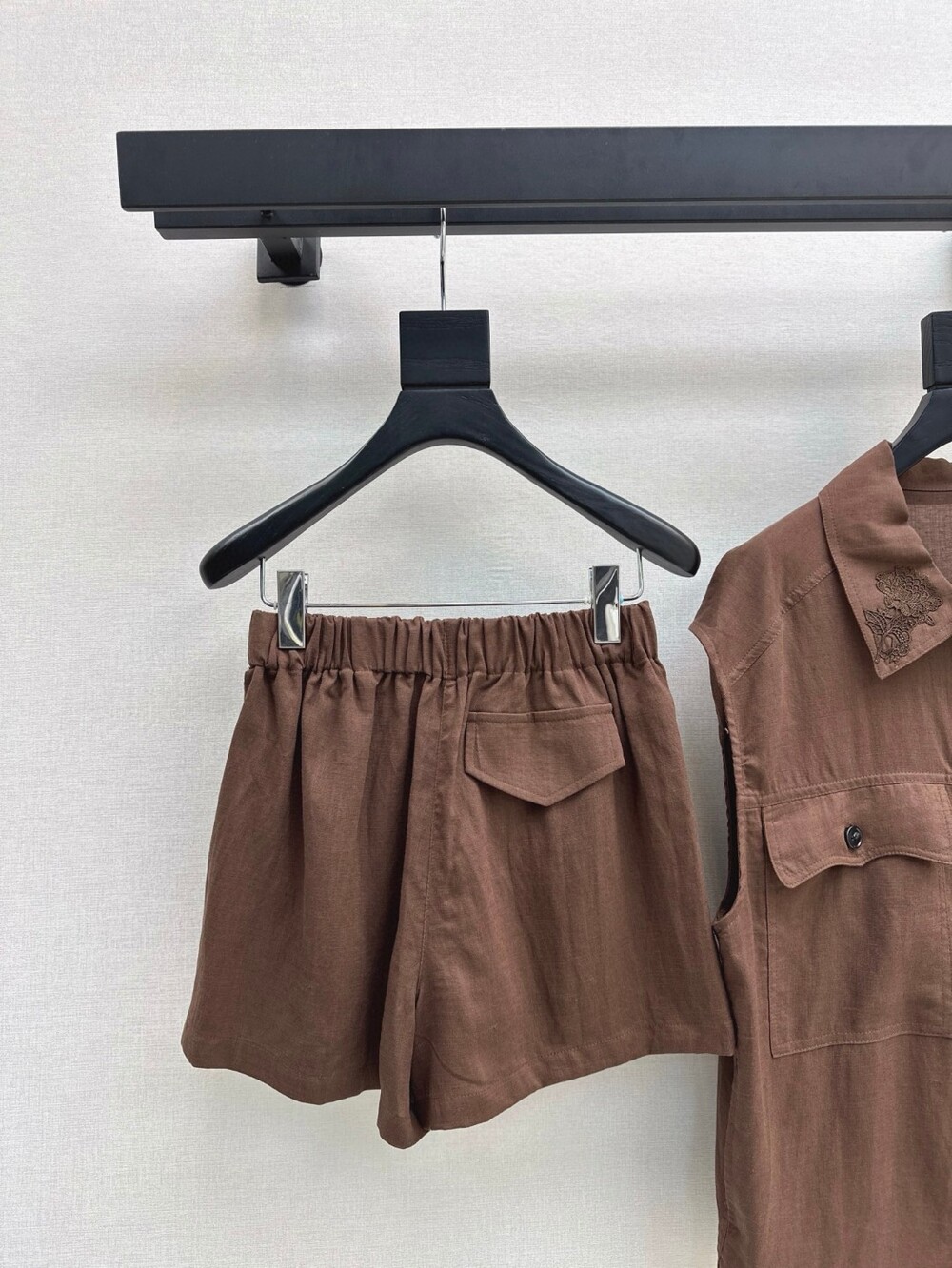 J. 로로 브라운 포켓 셔츠 쇼츠 세트 - 브라운