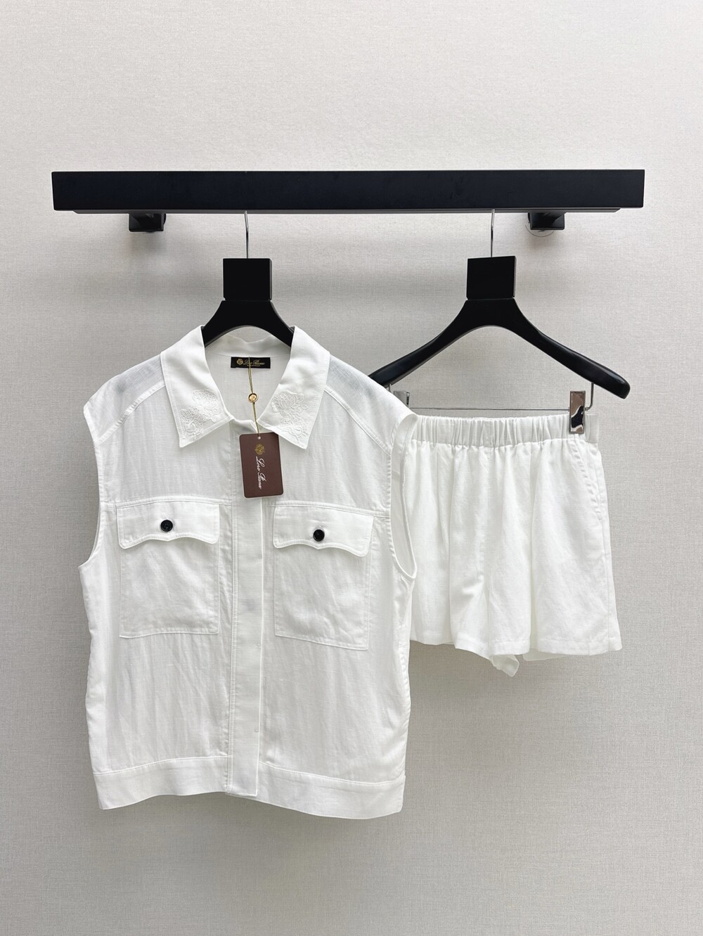 J. 로로 브라운 포켓 셔츠 쇼츠 세트 - 화이트