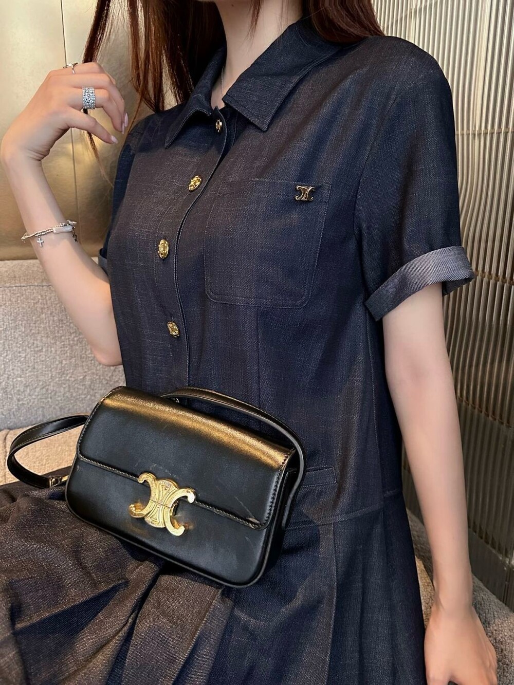 K. 셀리 진청 플리츠 데님 셔츠 원피스
