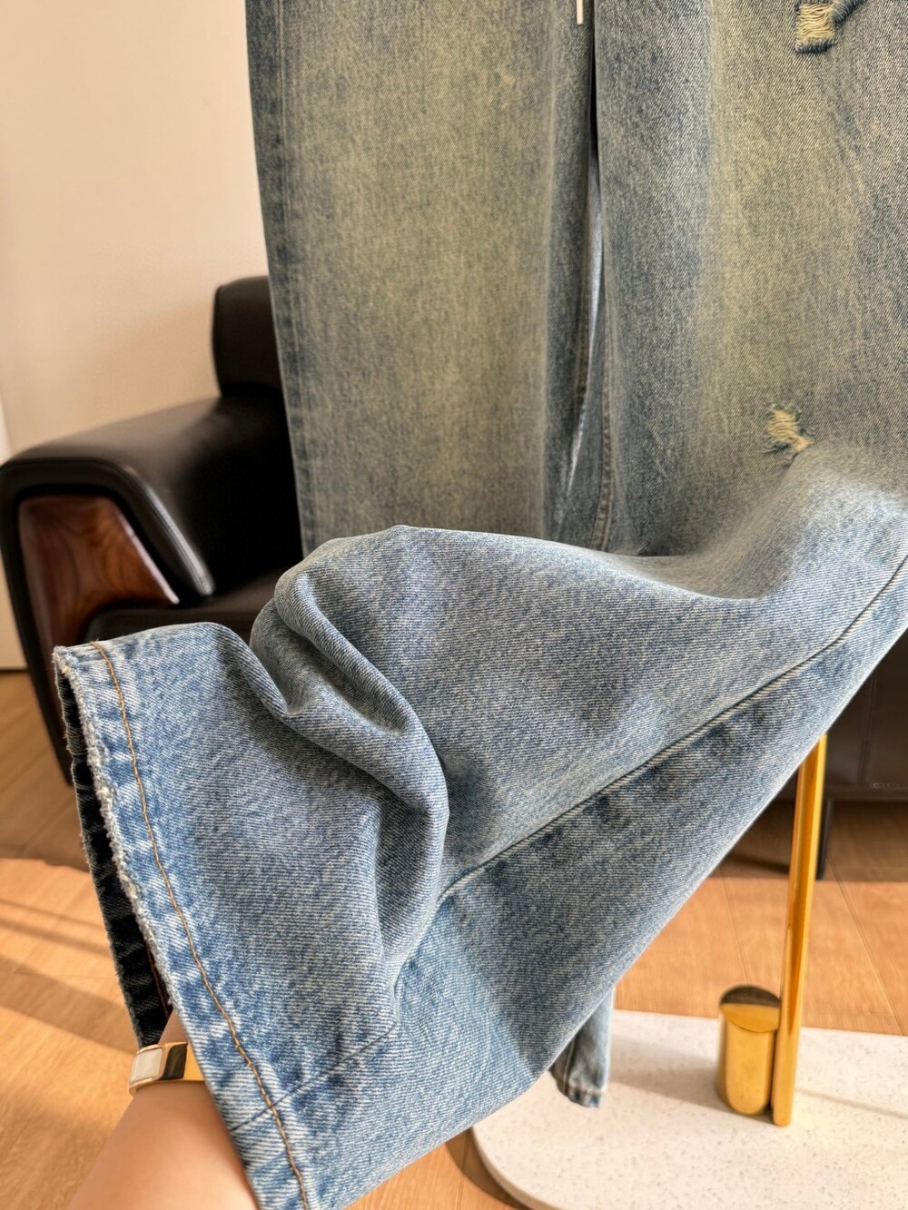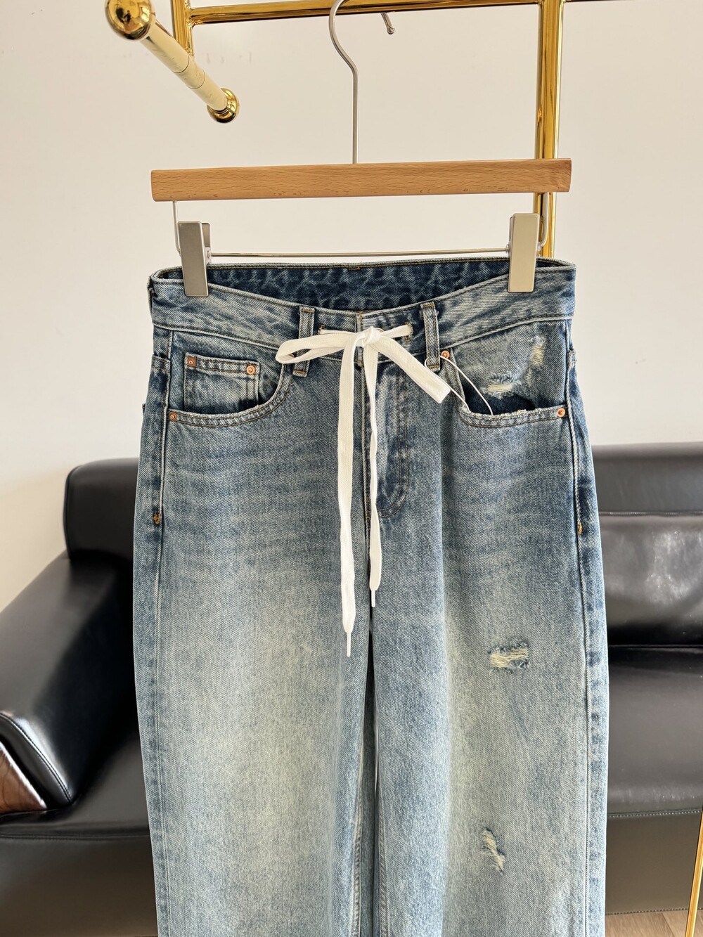L. 마르지엘라 스트링 데님 와이드 팬츠