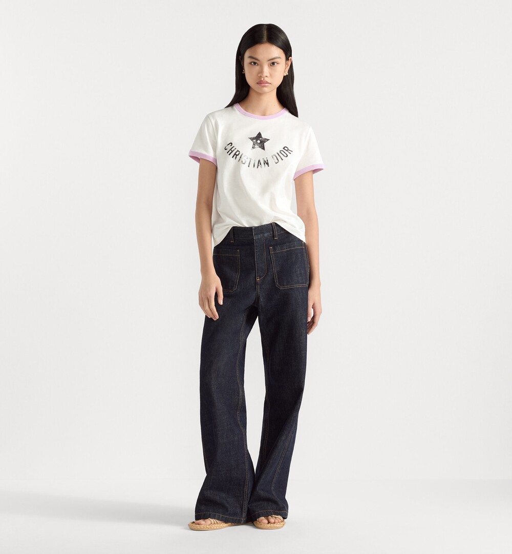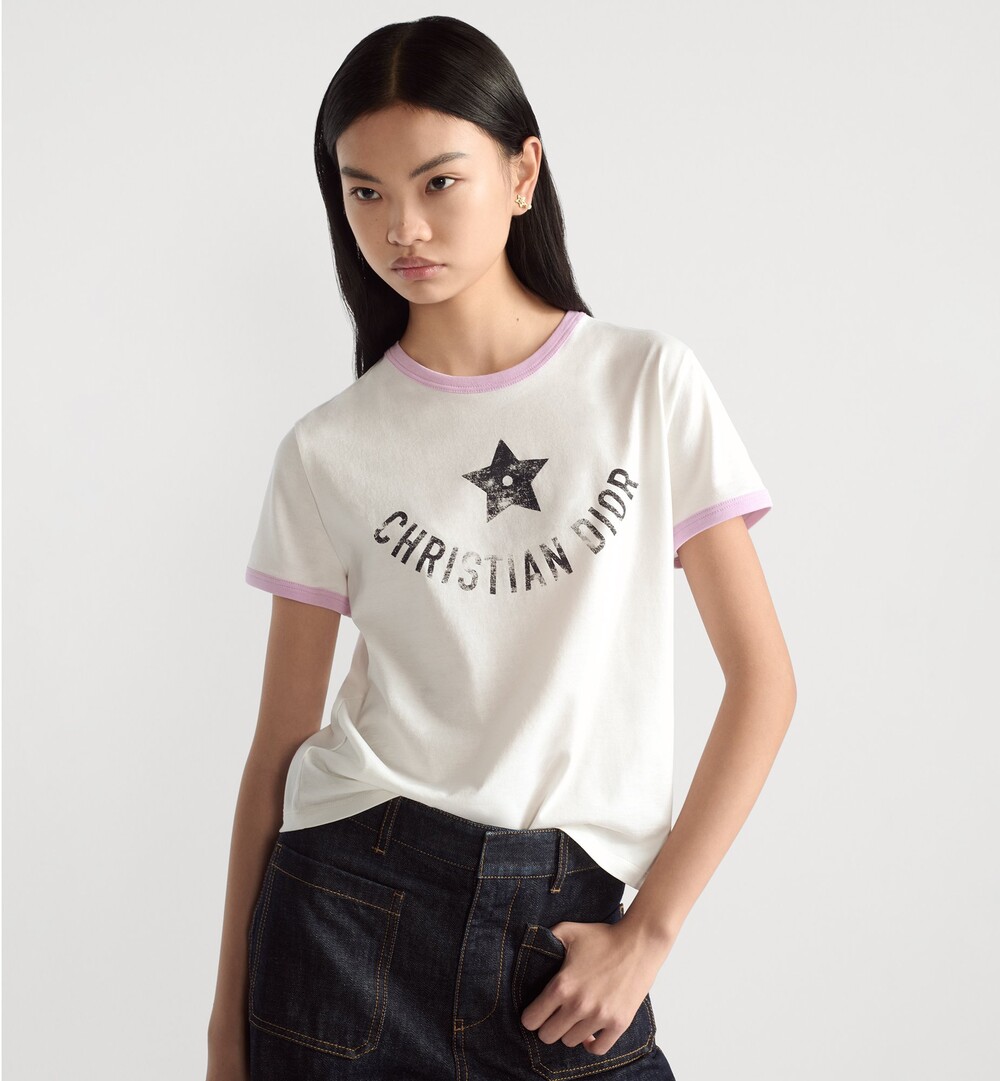 M. 디오르 스타 로고 배색 반팔 티셔츠