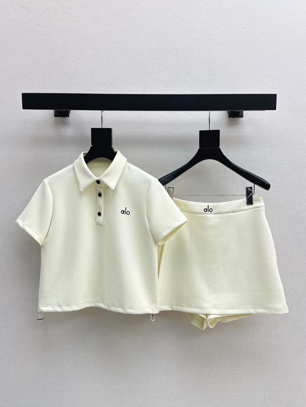 N. ALO 카라 셔츠 + 스커트 셋업 - 크림