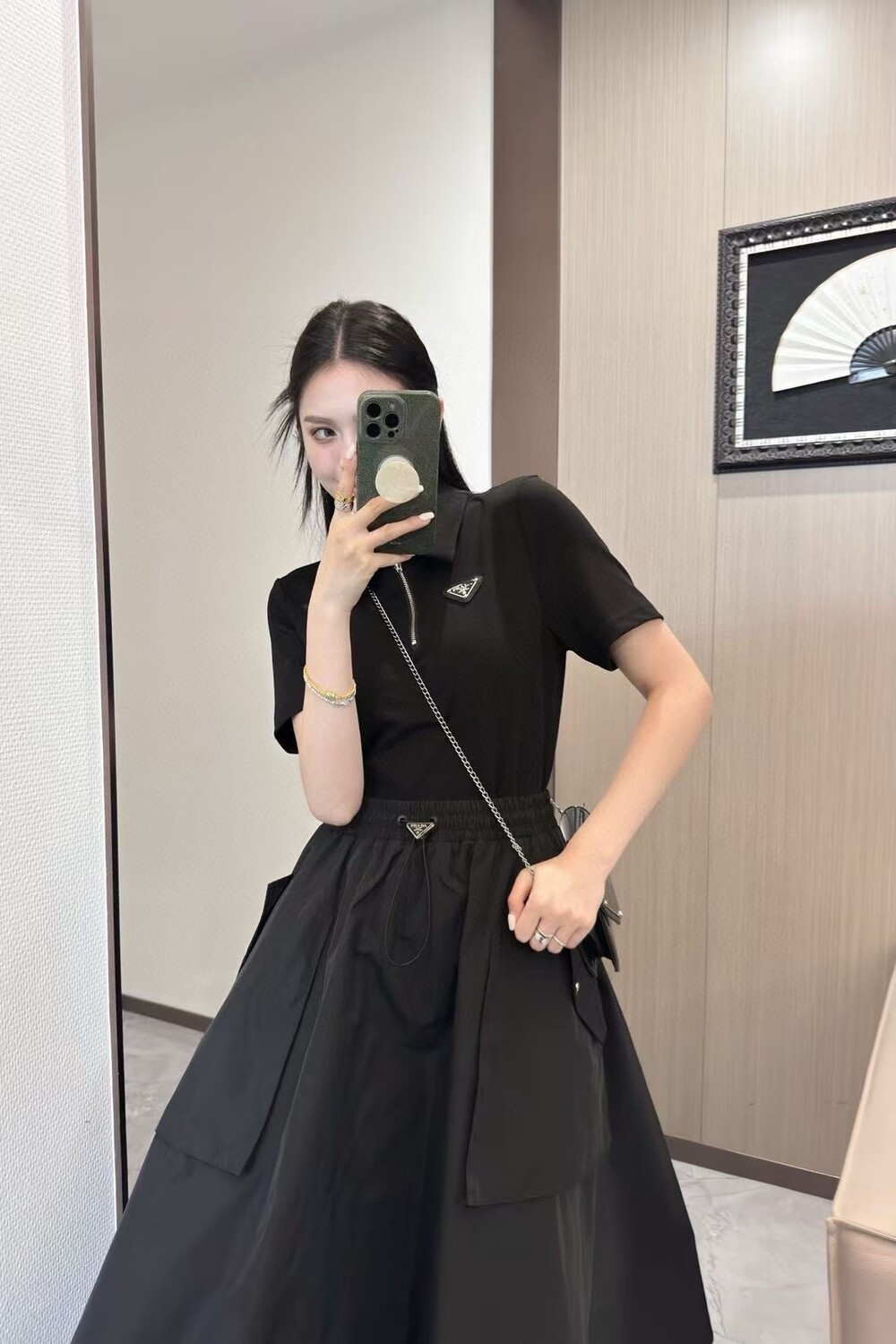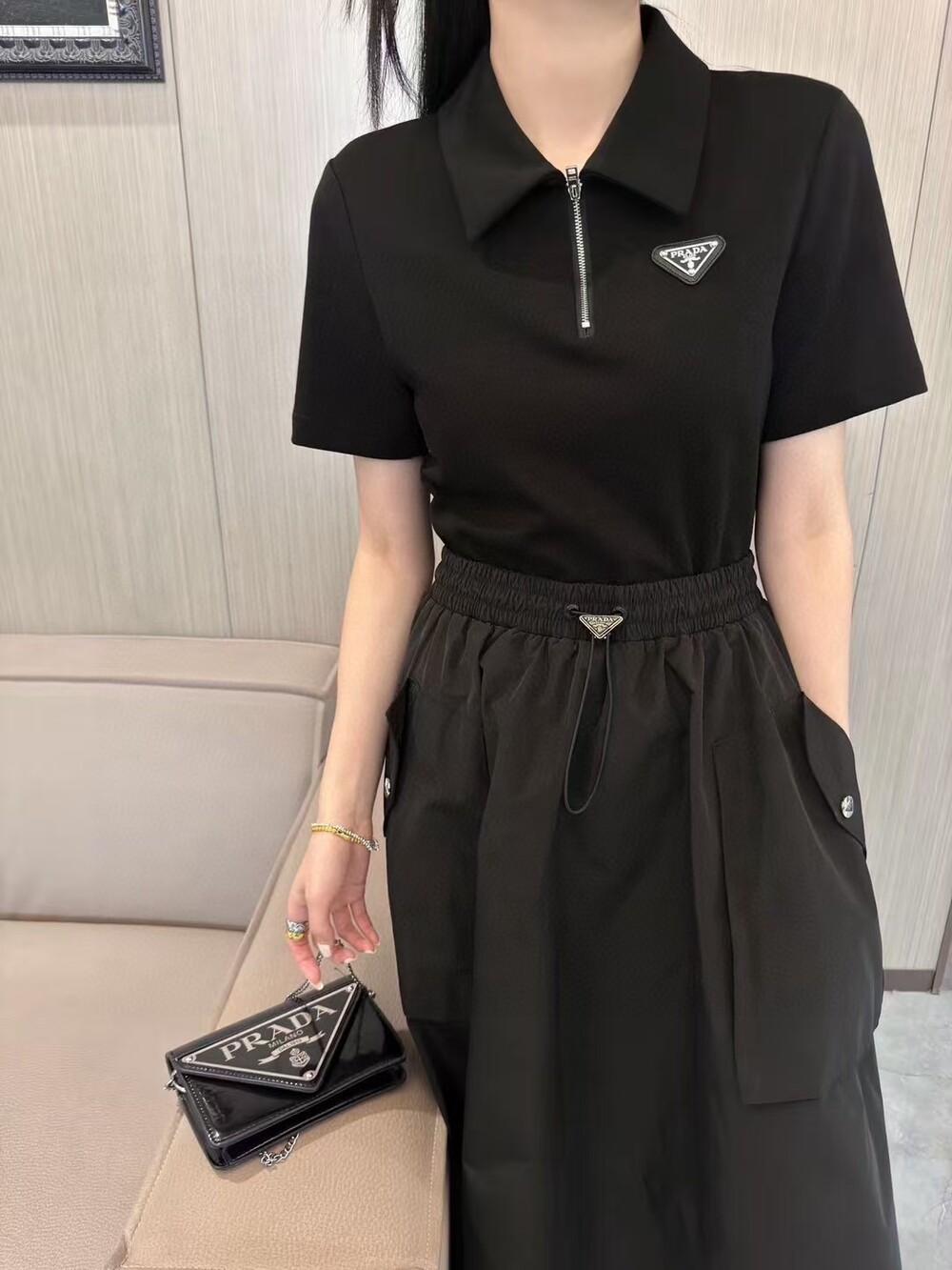 N. ALO 카라 셔츠 + 스커트 셋업 - 블랙