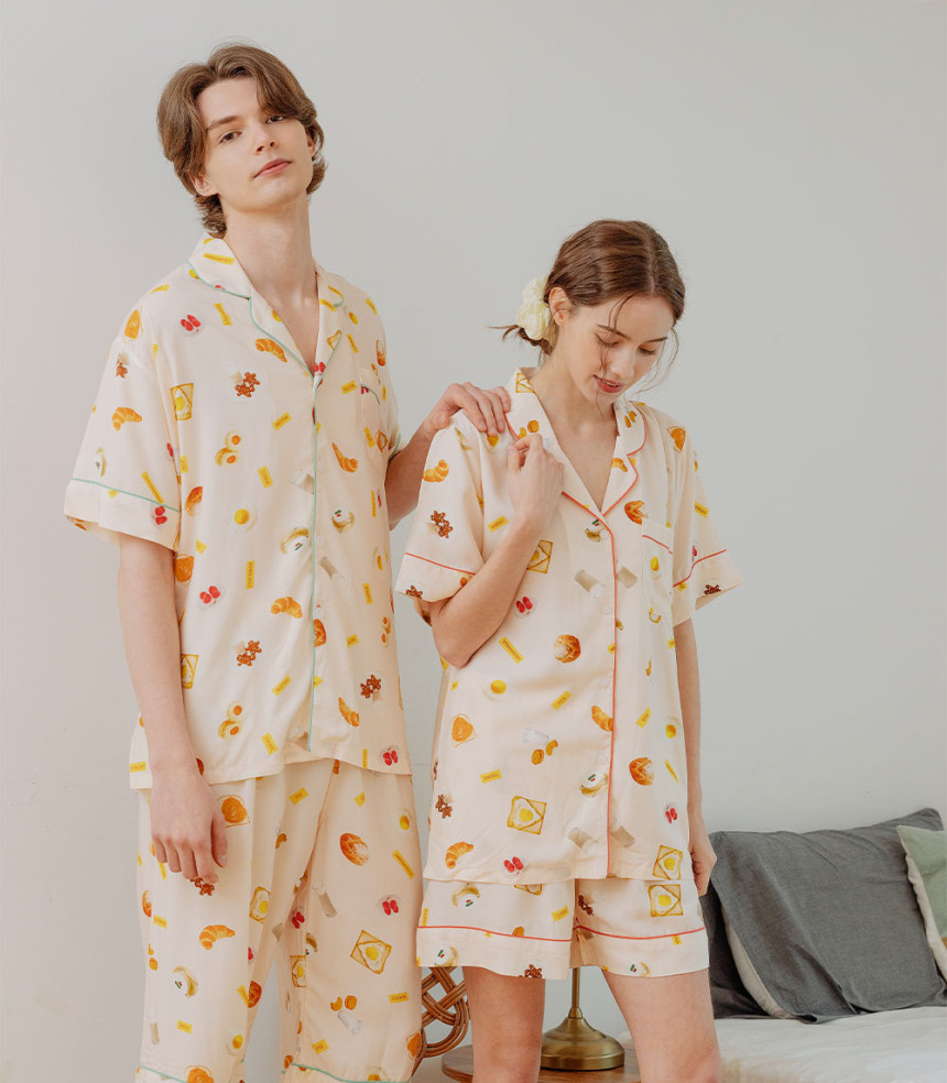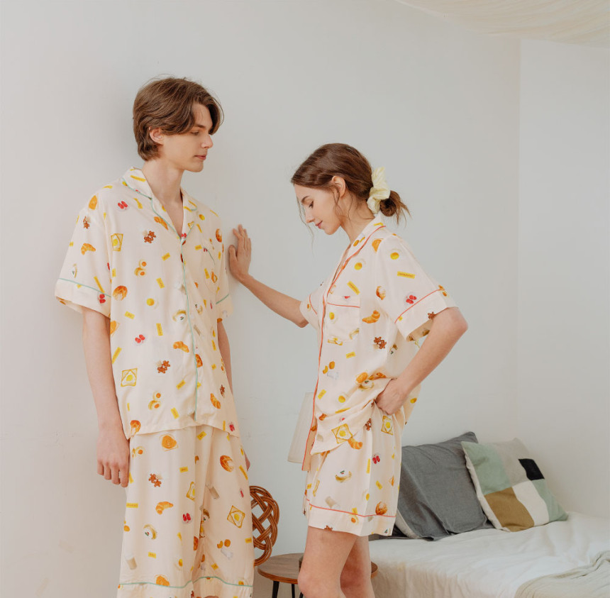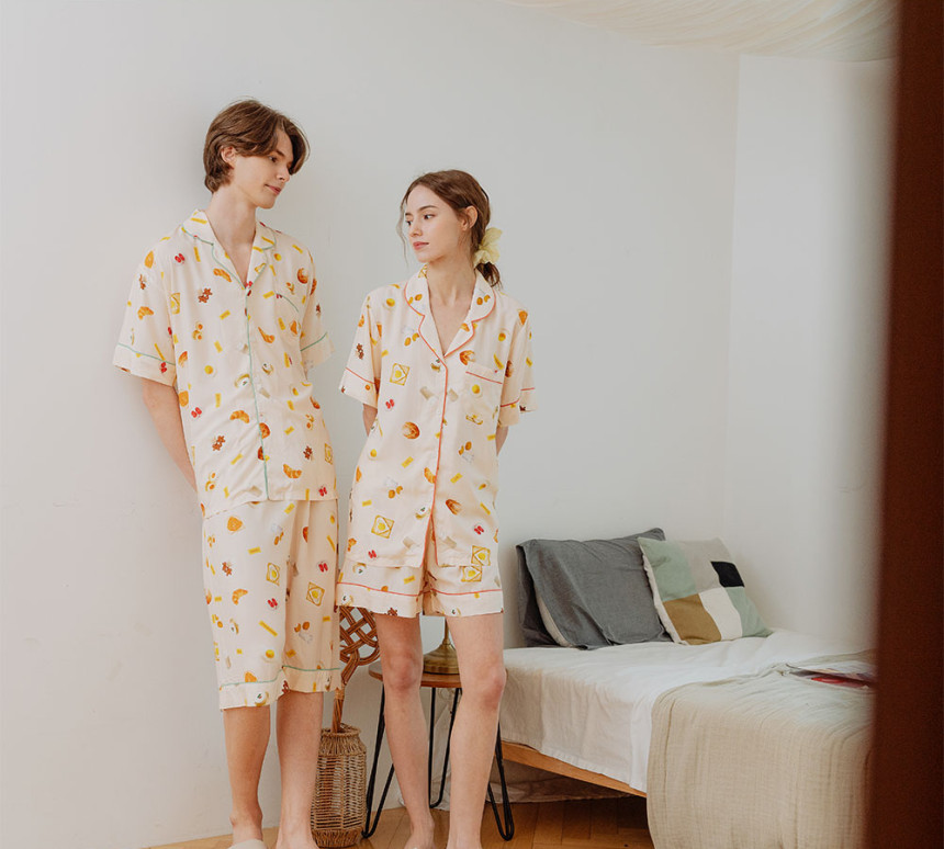 여성 남성 커플 브런치레이온 투피스 수면 잠옷