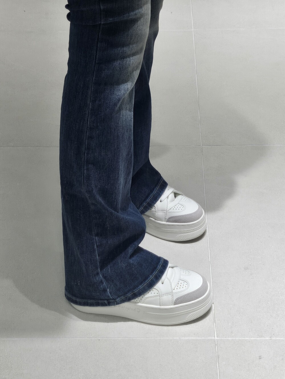 부츠컷 진에도 잘 어울리는 굽있는 스니커즈를 찾고 싶었어요